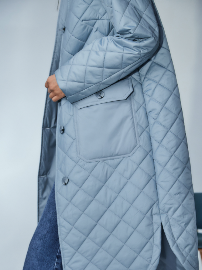 Утепленный плащ-рубашка прямого силуэта с втачным рукавом. В модели имеются два функциональных накладных кармана с клапанами на пуговицах, а также один внутренний карман. Ткань - плащевая с водоотталкивающей пропиткой, расстеганная ромбом. Утепление нового поколения ORSOTHERM 100 гр. Рекомендуемый температурный режим от +10°C до +18°C. Длина изделия: 110 см. Длина рукава: 64 см. Размеры: 42-56.