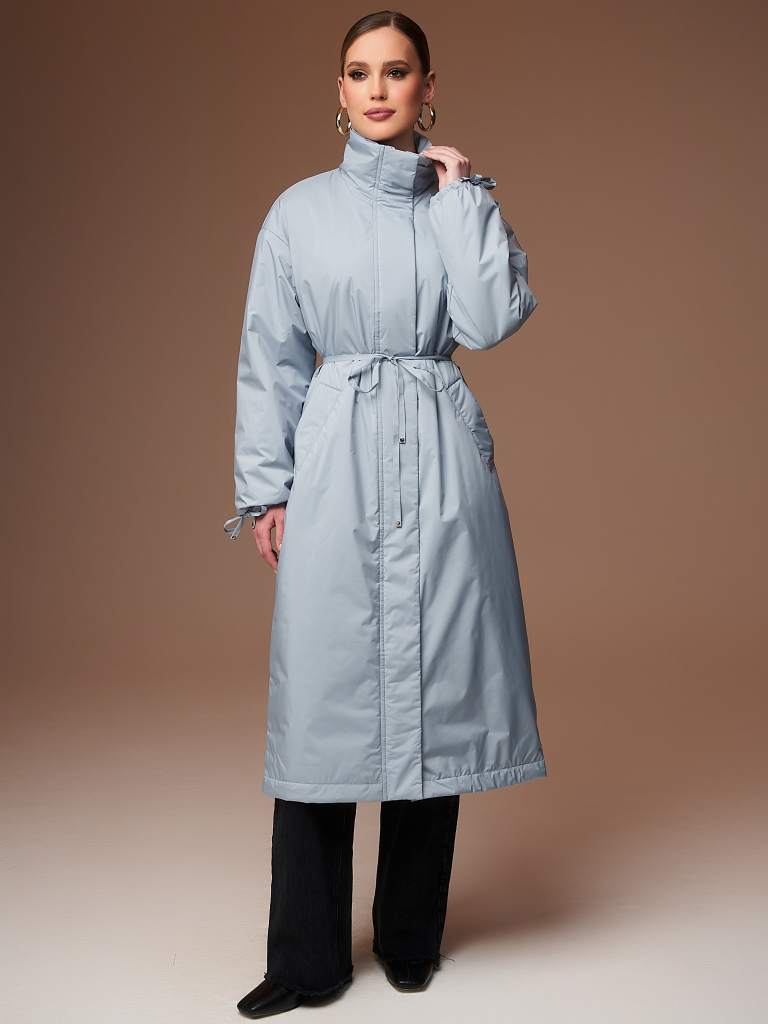 Длина изделия по спинке: 100 см Длина рукава: 64 см Плотность утеплителя: 100 г/м2 Температурный режим: от +10°C до +18°C Покрой: прямой Тип рукава: втачной Тип карманов: листочки на магнитных кнопках Состав: 100% полиэстер Материал подкладки: 100% полиэстер Ткань: плащевка с водоотталкивающей пропиткой. Размеры: 42-56 Детали: Застежка на декоративные кнопки.