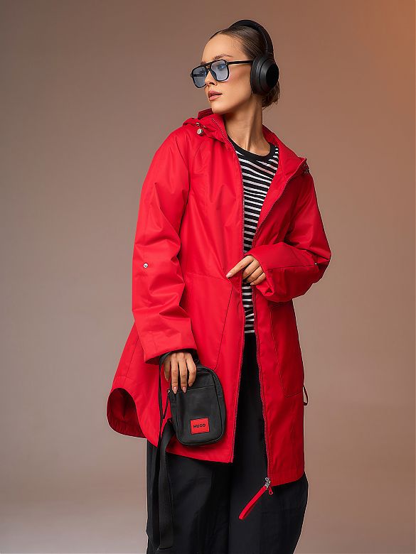 Длина изделия по спинке: 88 см Длина рукава: 7/8 Плотность утеплителя: 60 г/м2 Температурный режим: от +10°C до 18°C Покрой: А-силуэт Тип рукава: реглан Тип карманов: настрочной карман Состав: 100% полиэстер Материал подкладки: 100% полиэстр Ткань: с водоотталкивающей пропиткой. Размеры: 42-56 Детали: застежка на молнию в цвет изделия.
