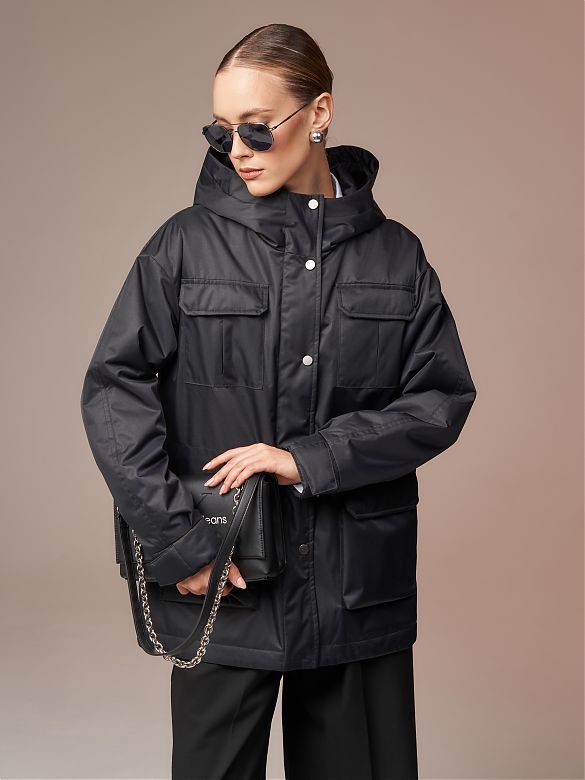 Плащ женский утепленный черный 33135