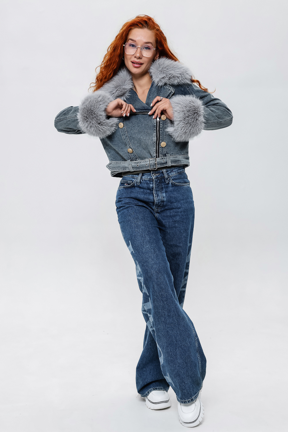 Женская укороченная куртка, сезон весна-осень. Мех отстегивается и куртка превращается в утепленную джинсовку. Отличное решение на межсезонье. Внутри подкладка. Цвет: синий;черный; Материал: полиэстер;джинс;джинс;полиэстер; Состав: верх: 100% ХБ, подклад100% ПЭ.