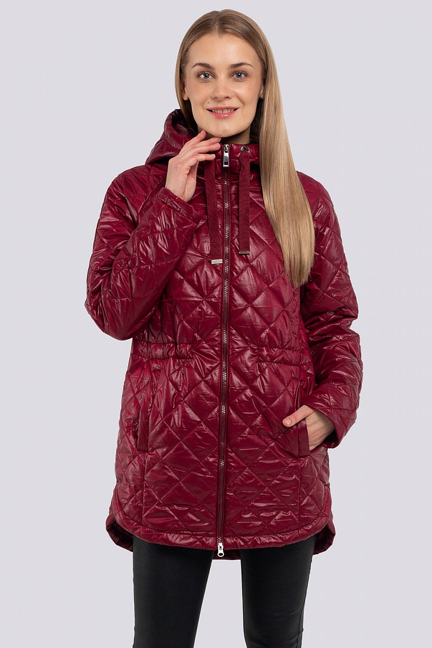 Куртка женская из стеганой ткани прямого силуэта, слегка ниже линии бедер. Куртка не сковывает движений благодаря слегка свободному крою и позволяет чувствовать себя максимально комфортно в прохладную погоду. Сзади куртка немного удлинена. По бокам декоративные округлые разрезы, по талии кулиса на регулируемой резинке. Небольшой капюшон согреет вас в ветреную погоду. По переду карманы с листочкой расположены в рельефах. Застежка на молнию. Утеплитель термофин, плотность 100.