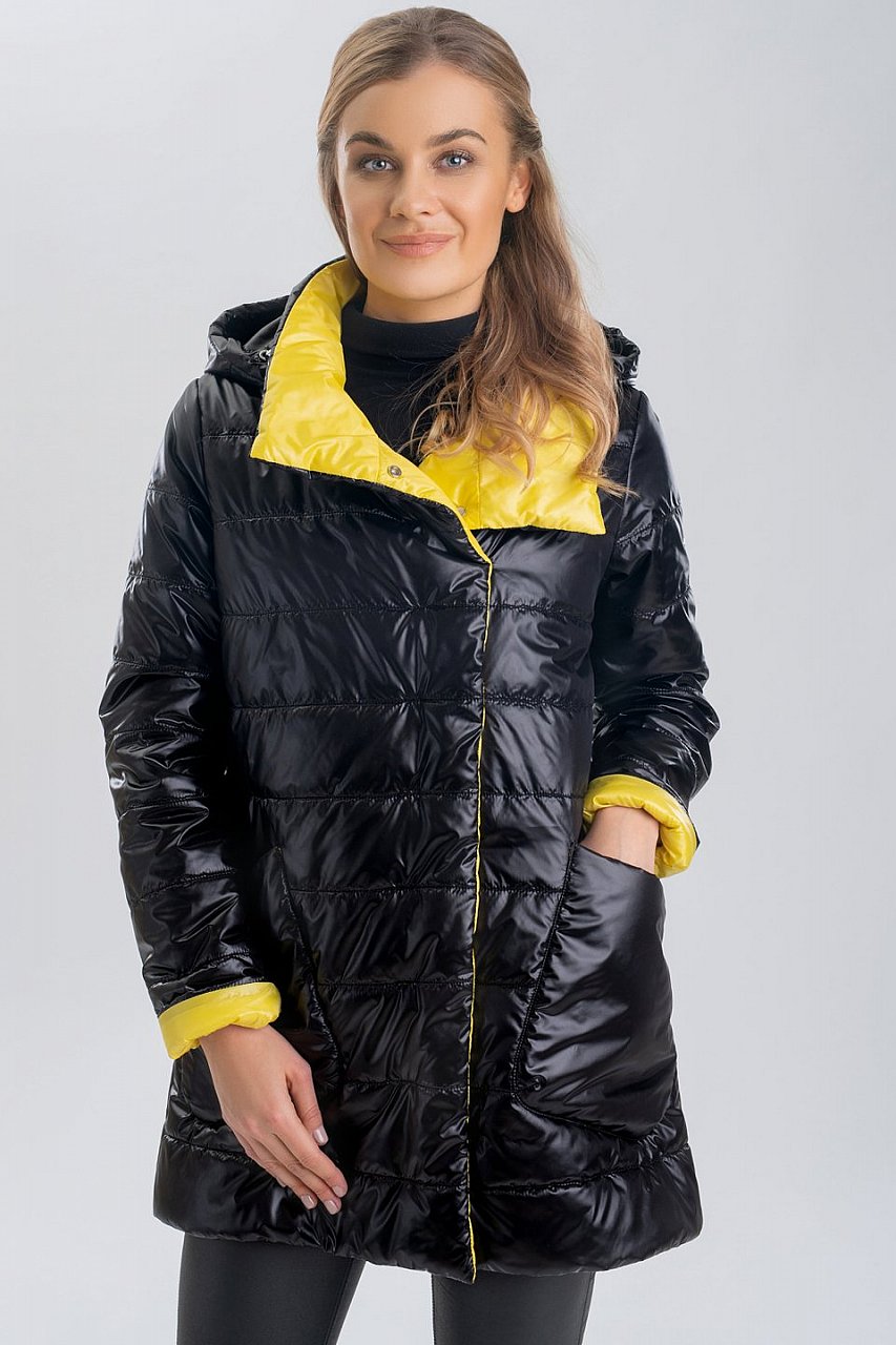 С приходом весны актуальной становится не только стильная, но и практичная верхняя одежда, которая максимально защитит от непогоды. Одной из самых популярных моделей в современном стиле считается женская куртка с капюшоном. Такие фасоны не просто обеспечат полный комфорт и уют, но и помогут исключить использование дополнительных аксессуаров. Демисезонная утепленная куртка, слегка расширенная к низу с накладными карманами. Застежка смещенная на потайные кнопки, воротник стойка, капюшон отстегивается. Утеплитель термофин, плотность 150. черный