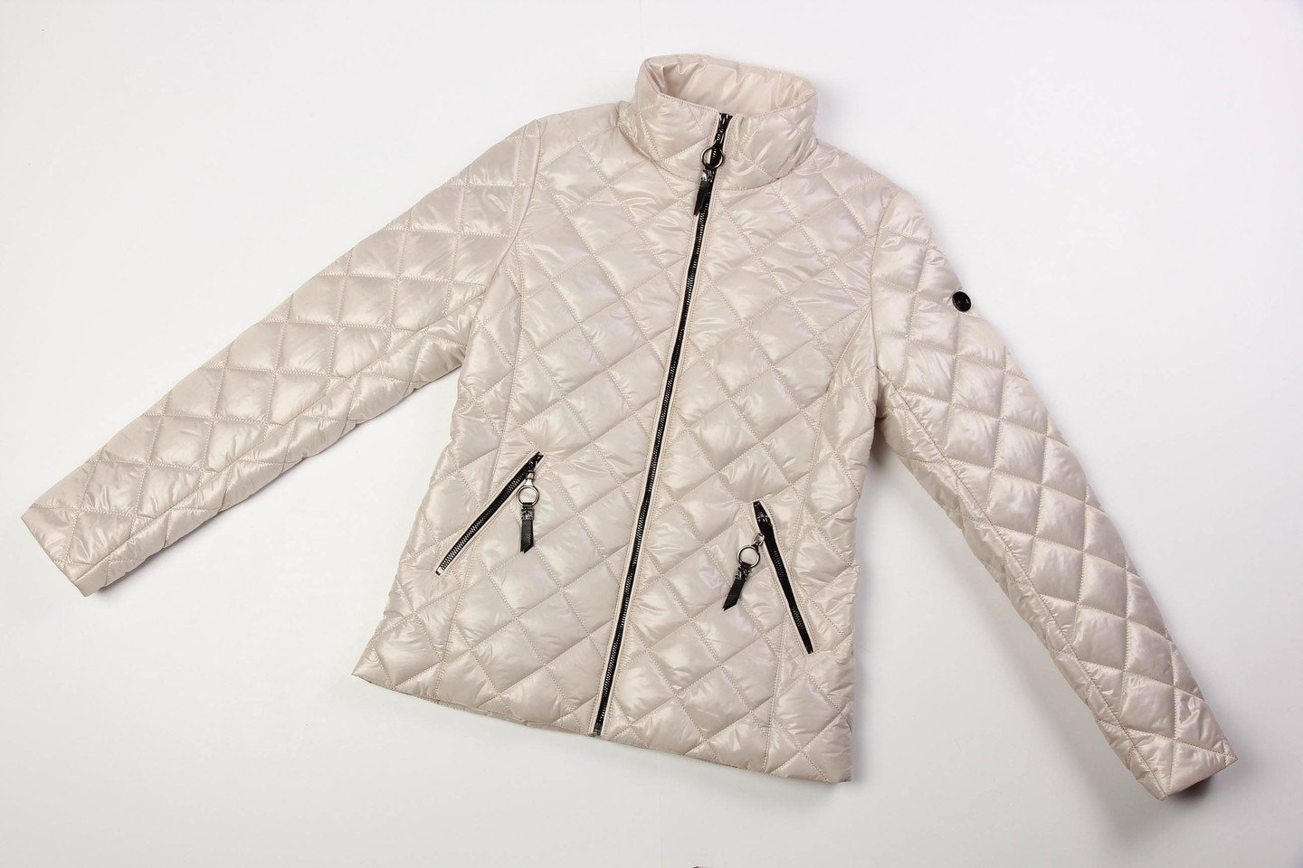 В этом сезоне очень популярен на модном подиуме стеганый материал, из которого чаще всего изготавливают куртки на весну и осень. Такие куртки даже без дополнительного рисунка выглядят полноценно и очень интересно. Простой и стильный образ подойдет как для деловой встречи, так и для прогулок. Силуэт куртки слегка приталенный. Центральная застежка и карманы на молниях. Утеплитель термофин, плотность 100. жемчужный