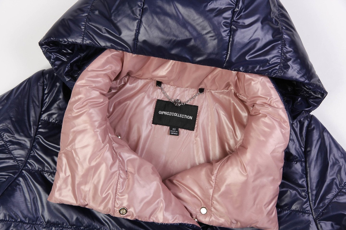 С приходом весны актуальной становится не только стильная, но и практичная верхняя одежда, которая максимально защитит от непогоды. Одной из самых популярных моделей в современном стиле считается женская куртка с капюшоном. Такие фасоны не просто обеспечат полный комфорт и уют, но и помогут исключить использование дополнительных аксессуаров. Демисезонная утепленная куртка, слегка расширенная к низу с накладными карманами. Застежка смещенная на потайные кнопки, воротник стойка, капюшон отстегивается. Утеплитель термофин, плотность 150. темно-синий