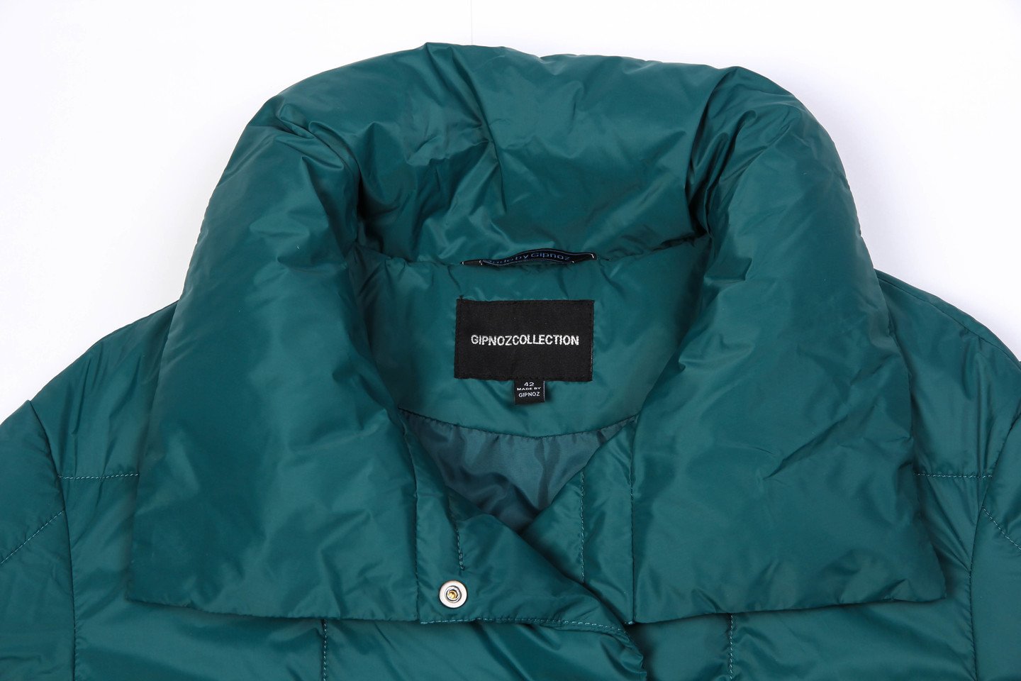 темная бирюза Куртка женская с поясом и с высоким объемным воротником. Свободный силуэт можно сделать