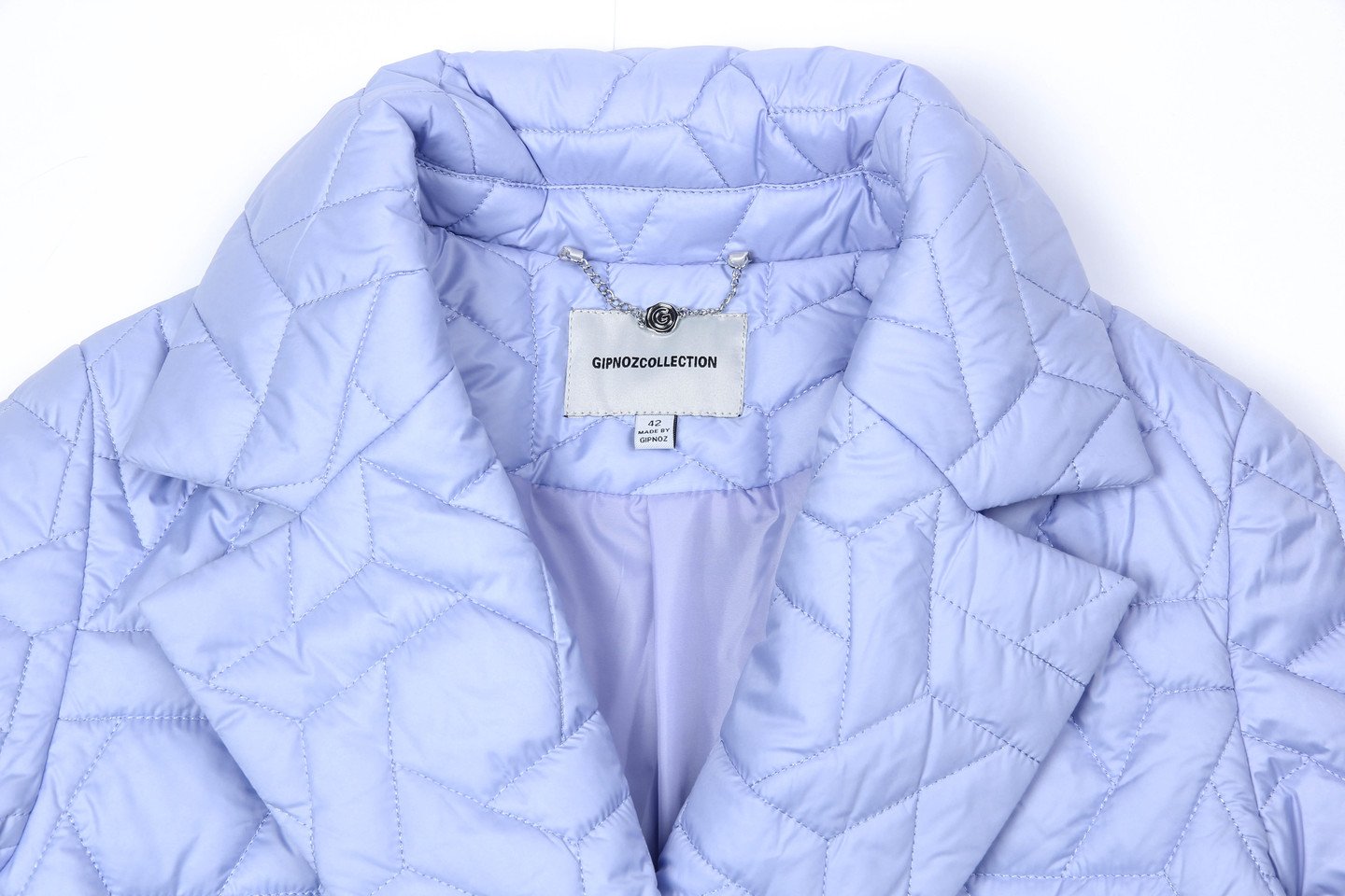 сиренево-голубой Короткие версии стеганых вещей не только легкие и удобные, но и станут идеальной вещью для создания модного образа в теплое межсезонье. Легкий жакет в классическом стиле – идеальный вариант для повседневной носки! Он подходит к любому образу, может использоваться с поясом и без. Идеальная посадка на любую фигуру, включая размеры size+. Покрой рукава - втачной, рукав может отгибаться на манжет. Силуэт изделия прямой, объем – средний. Новый вид стежки смотрится очень оригинально и женственно, пуговицы в цвет изделия. Утеплитель термофин, плотность 100.