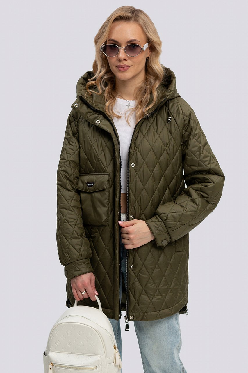 хаки Легкая куртка-парка из стеганой ткани - отличный выбор для каждодневного использования.