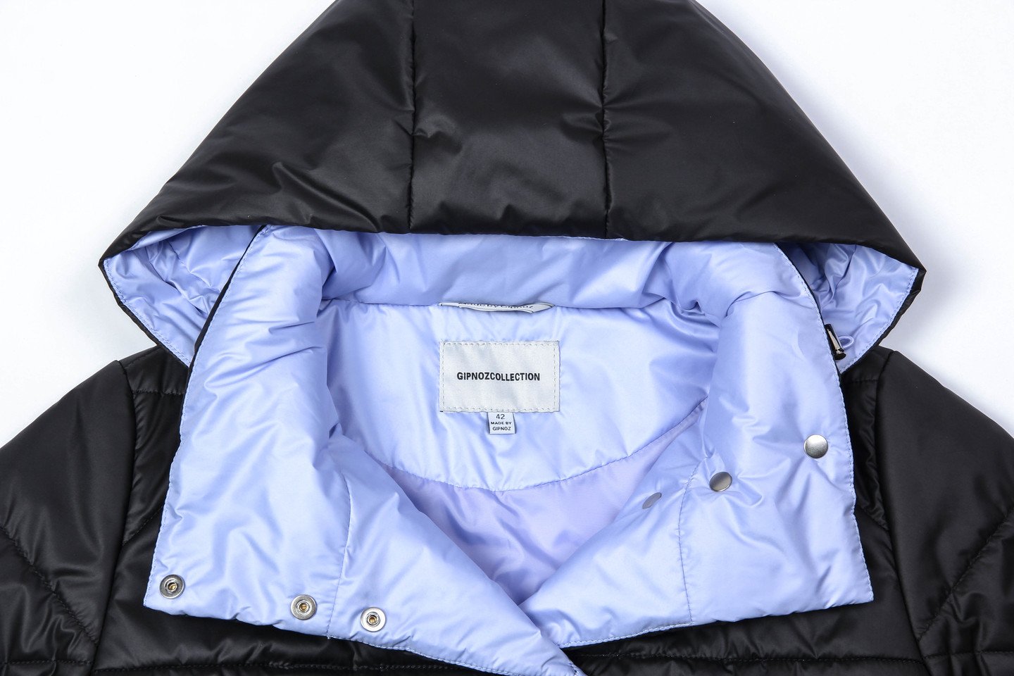 С приходом весны актуальной становится не только стильная, но и практичная верхняя одежда, которая максимально защитит от непогоды. Стильный дизайн модели и контрастное сочетание цветов не оставит вас без внимания. Одной из самых популярных моделей в современном стиле считается женская куртка с капюшоном. Такие фасоны не просто обеспечат полный комфорт и уют, но и помогут исключить использование дополнительных аксессуаров. Демисезонная утепленная куртка, слегка расширенная к низу с карманами на молнии в швах. Застежка смещенная на потайные кнопки, воротник стойка, капюшон отстегивается. Утеплитель термофин, плотность 150. черный с сиреневым