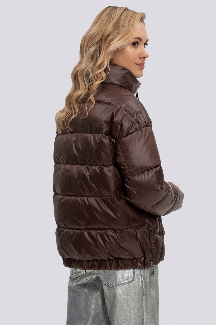 темный шоколад Потрясающе стильная, укороченная женская куртка сделает ваш весенний образ невероятно привлекательным. Новинка нашего сезона удивляет разнообразием цветовой гаммы и необычной формой изделия. Куртка свободного объема, по спинке снизу слегка собрана на резинку – создается актуальный в этом сезоне О-силуэт. Спущенная линия плеча расположена очень удачно, подходит на любую фигуру. Застежка молния, снизу – ветровой клапан. Воротник стойка, кармашки застегиваются на кнопку. В модели используется ткань – компаньон и подкладка контрастного цвета, что смотрится очень оригинально, освежает изделие. Также в изделии использована комбинированная стежка. Короткая куртка смотрится легко и воздушно, с 50-го размера длина увеличивается на 2 см. Изделие легкое, комфортное в носке, сочетается с любой одеждой. Утеплитель синтепух, температурный режим до -10.