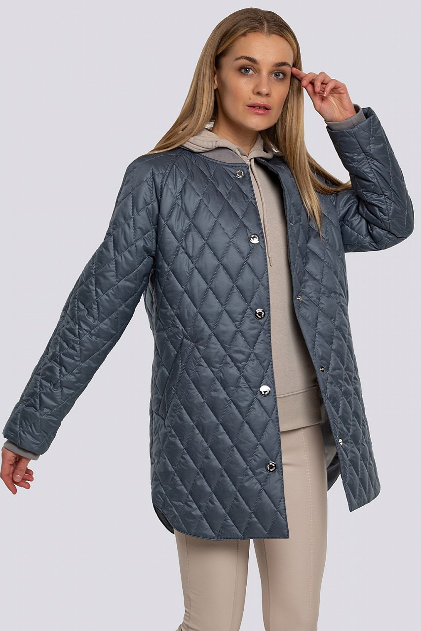 Для почитательниц удобства и практичности в одежде предлагаем модную куртку - бомбер из стеганой ткани. Модель удлиненная, подойдет на любую фигуру, на горловине и рукавах мягкий манжет. Особенности модели: очень спокойные – «припыленные» цвета с контрастной отделкой, застежка на кнопки, карман застегивается на потайную кнопку, фигурная линия низа. Утеплитель – термофин, плотность 100. графит