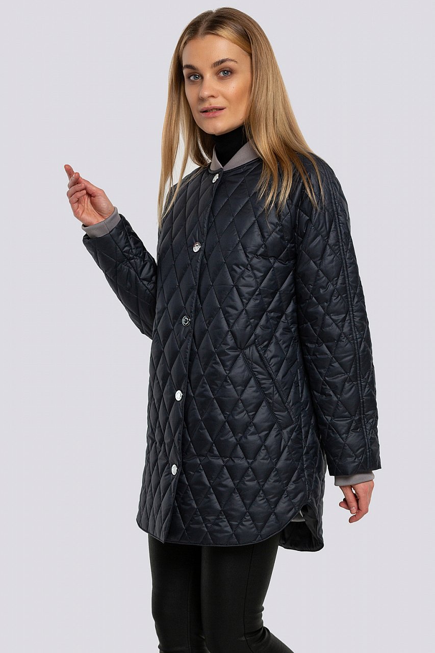 Для почитательниц удобства и практичности в одежде предлагаем модную куртку - бомбер из стеганой ткани. Модель удлиненная, подойдет на любую фигуру, на горловине и рукавах мягкий манжет. Особенности модели: очень спокойные – «припыленные» цвета с контрастной отделкой, застежка на кнопки, карман застегивается на потайную кнопку, фигурная линия низа. Утеплитель – термофин, плотность 100. черно-синий