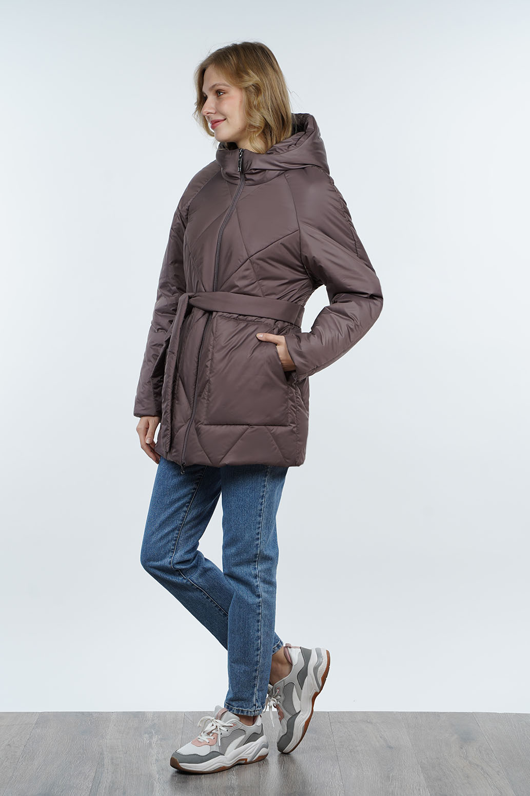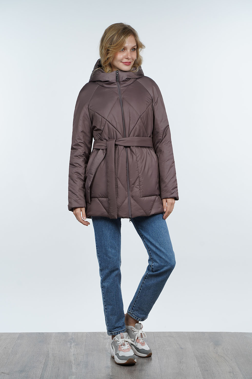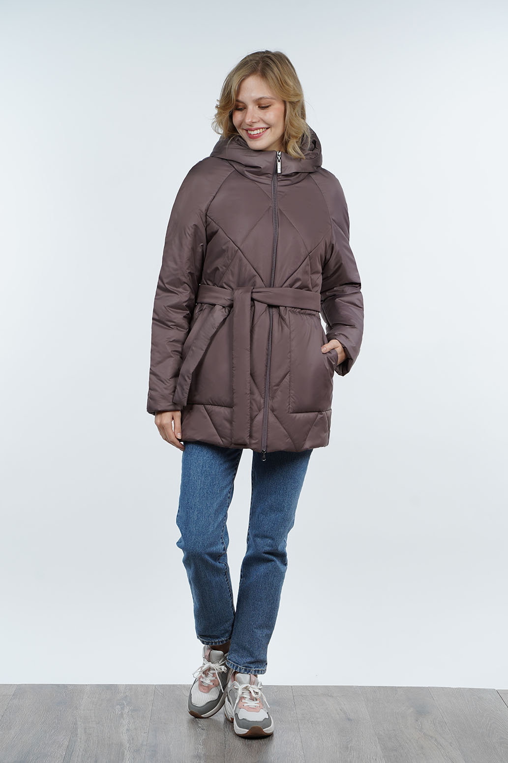Удлиненная куртка с рукавом реглан, имеет стильный дизайн и уникальную стежку в форме ромбов, которая делает ее привлекательной и модной. Глубокий капюшон защищает от ветра и дождя. Модель имеет практичную молнию, что делает процесс одевания и снятия куртки удобным и быстрым. Накладные карманы увеличивают ее функциональность, позволяя хранить необходимые мелочи под рукой. Завязывающийся пояс добавляет женственности и позволяет подчеркнуть талию, создавая элегантный силуэт. Это изделие отлично подойдет для повседневной носки в прохладную или дождливую погоду, обеспечивая комфорт, стиль и защиту от непогоды.