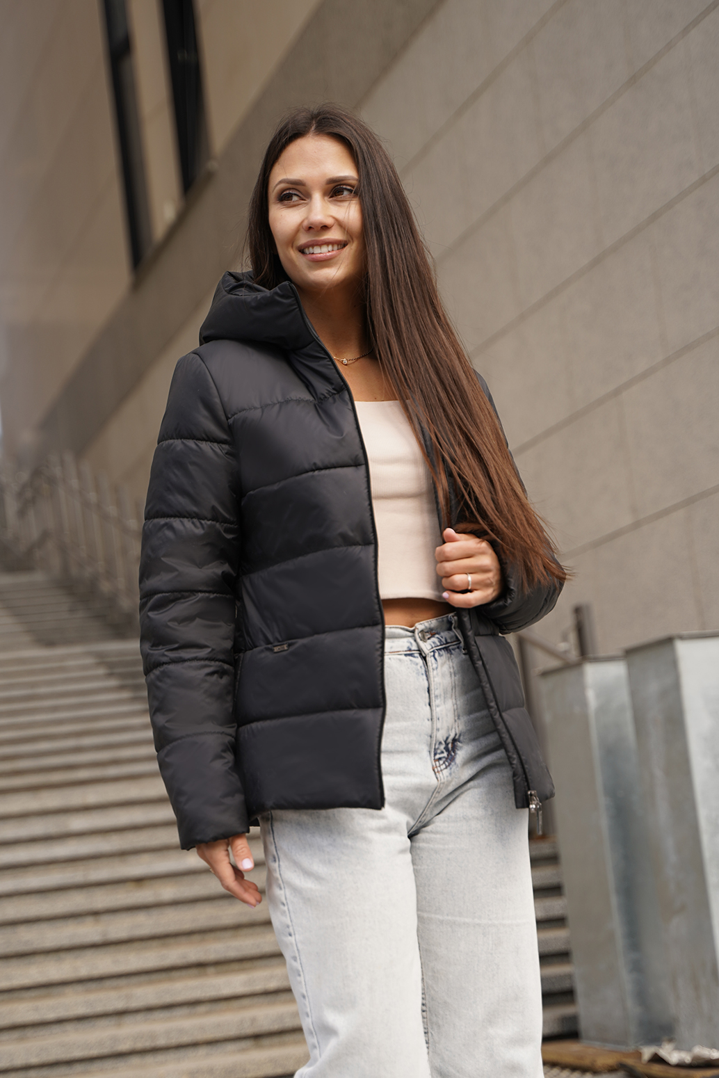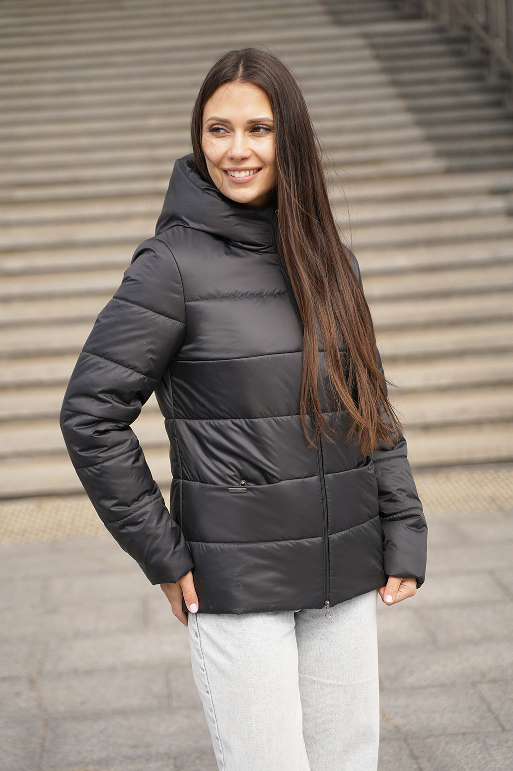 Лаконичная куртка с капюшоном станет идеальным выбором для переменчивой погоды межсезонья. Она сочетает в себе функциональность, комфорт и стиль, обеспечивая надежную защиту от ветра и дождя. Особенностью этой модели являются карманы, искусно спрятанные в швах. Такое решение не только добавляет куртке элегантности и минимализма, но и обеспечивает удобное и незаметное хранение необходимых мелочей. Карманы достаточно вместительны, чтобы вместить телефон, ключи или кошелек, не нарушая при этом силуэт куртки. Капюшон, как неотъемлемая часть демисезонной куртки, обеспечивает дополнительную защиту от непогоды.  В целом, женская демисезонная куртка с капюшоном, карманами в швах и видовой молнией – это практичная и стильная вещь, которая станет незаменимой в гардеробе каждой современной женщины. Она идеально подходит для повседневной носки, прогулок по городу и активного отдыха на природе.