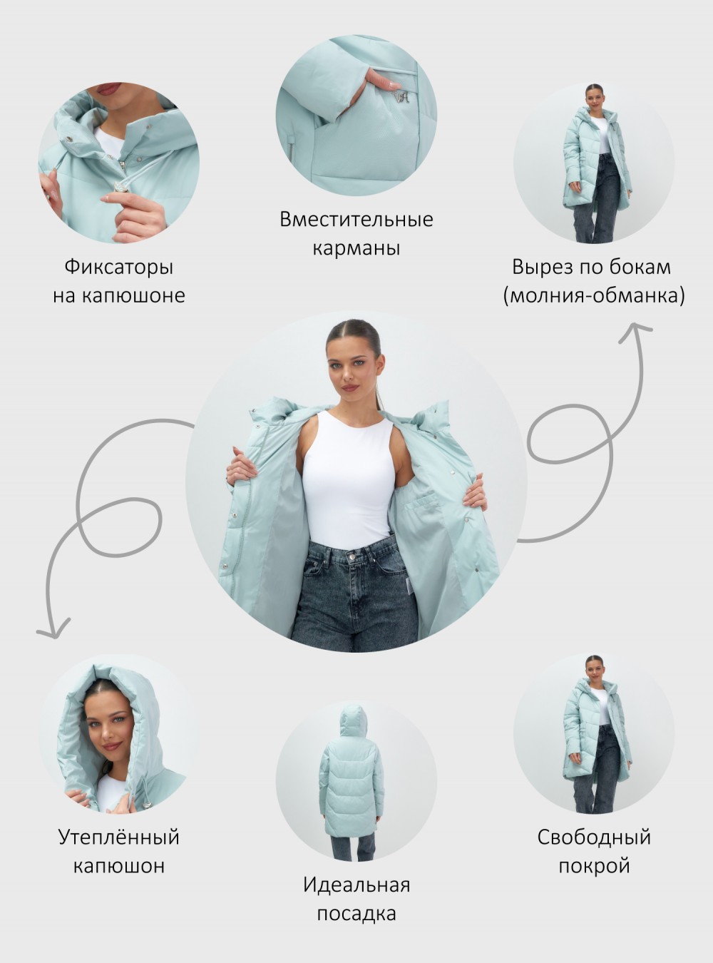 Декоративные элементы: Капюшон, Карманы, Манжеты, Молния