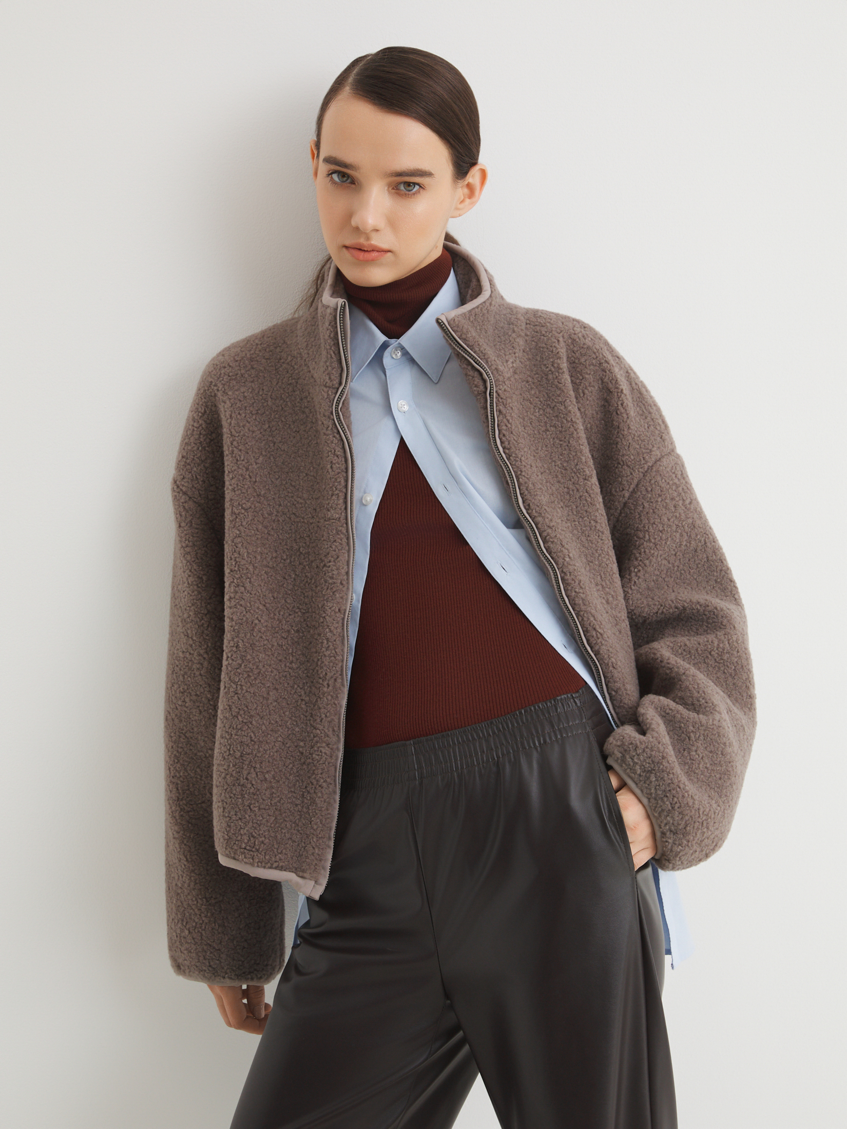 Женская куртка тедди MAISON DAVID 4643233, коричнево-серый