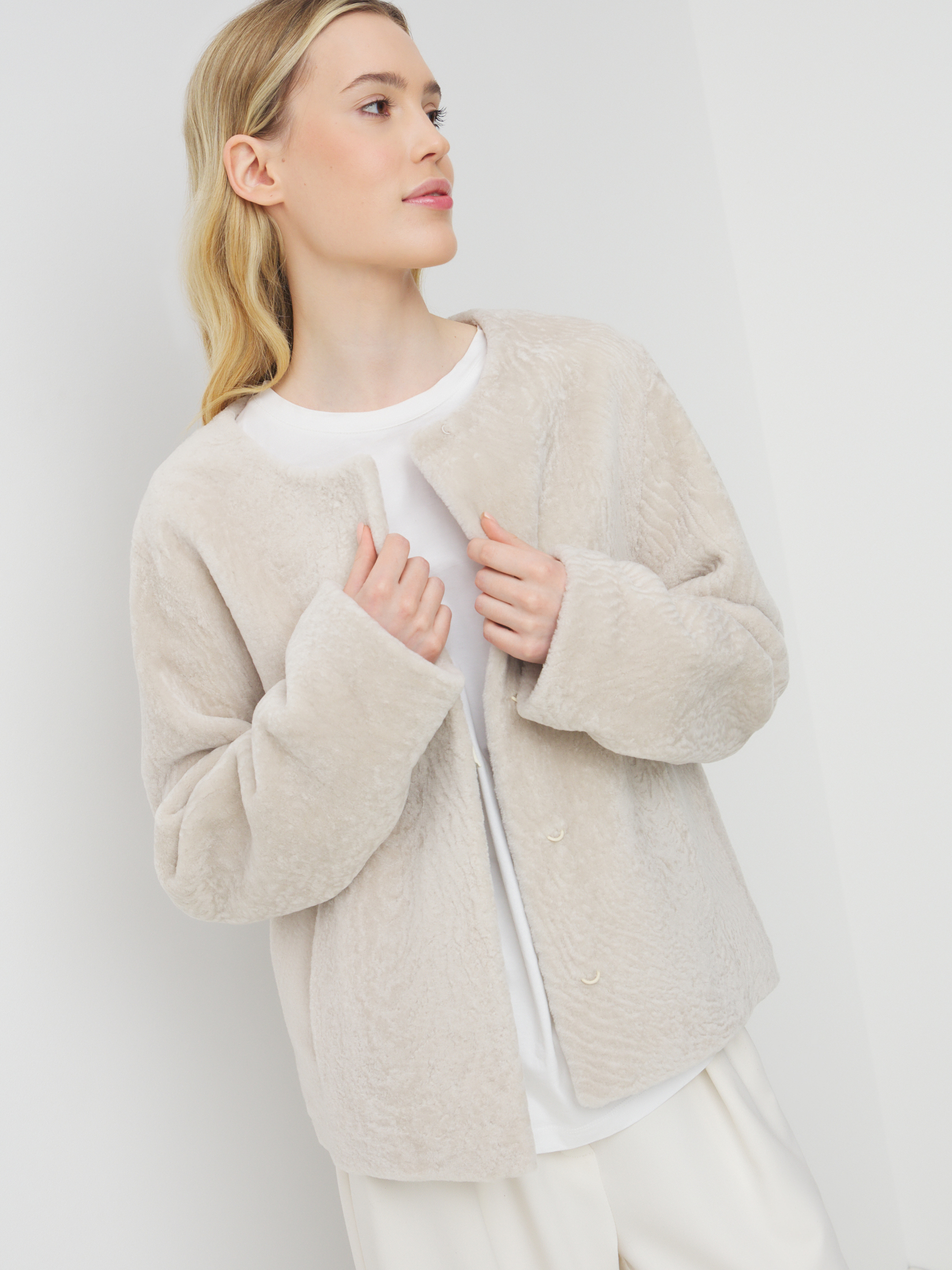 Женский меховой жакет MAISON DAVID 4715115, пыльно-бежевый