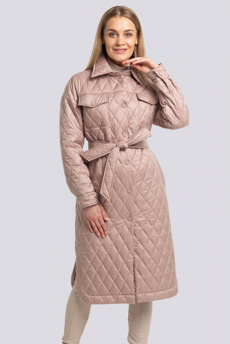 Актуальной тенденцией последних сезонов является пальто-рубашка. Непревзойденно смотрится женское длинное пальто-рубашка из стеганой ткани. Пальто свободного покроя, боковые кармашки в листочку, на груди клапаны и имитация карманов. Центральная застежка на кнопки. Отложной воротник на стойке. Низ рукава на манжете с кнопкой. В комплекте пояс. По бокам закругленные разрезы. Утеплитель термофин, плотность 100.