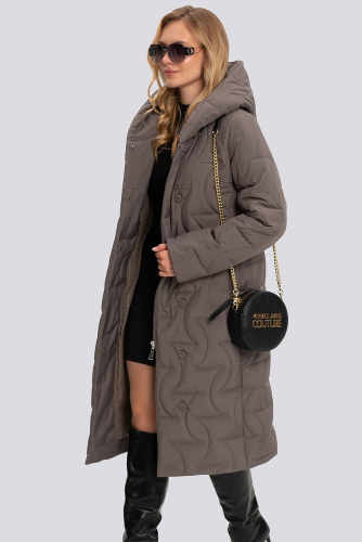 В этом году, как и в предыдущих, не теряют свою актуальность стеганые пальто. Изделие из данной ткани более практичное и удобное в использовании. Пальто в классическом стиле, полуприлегающего силуэта. Умеренный объем изделия идеально подходит для создания уютного образа, который при этом будет выглядеть стильно и элегантно. Втачной покрой рукава идеален для любой фигуры, придает стройность и строгость образу. Капюшон – очень удобная и актуальная деталь верхней одежды, защитит от ветра и холода. Рукав отгибается на манжет. Модель отлично смотрится с поясом и без. Пальто застегивается на кнопки и внутреннюю молнию. Новый вид стежки несомненно приковывает взгляды окружающих. Нам удалось продлить сезон носки изделия, за счет внедрения в производство нового вида стеганой ткани. Ткань верха плотная и многослойная. Утеплитель термофин, плотность 200. Температурный режим до -10. латте