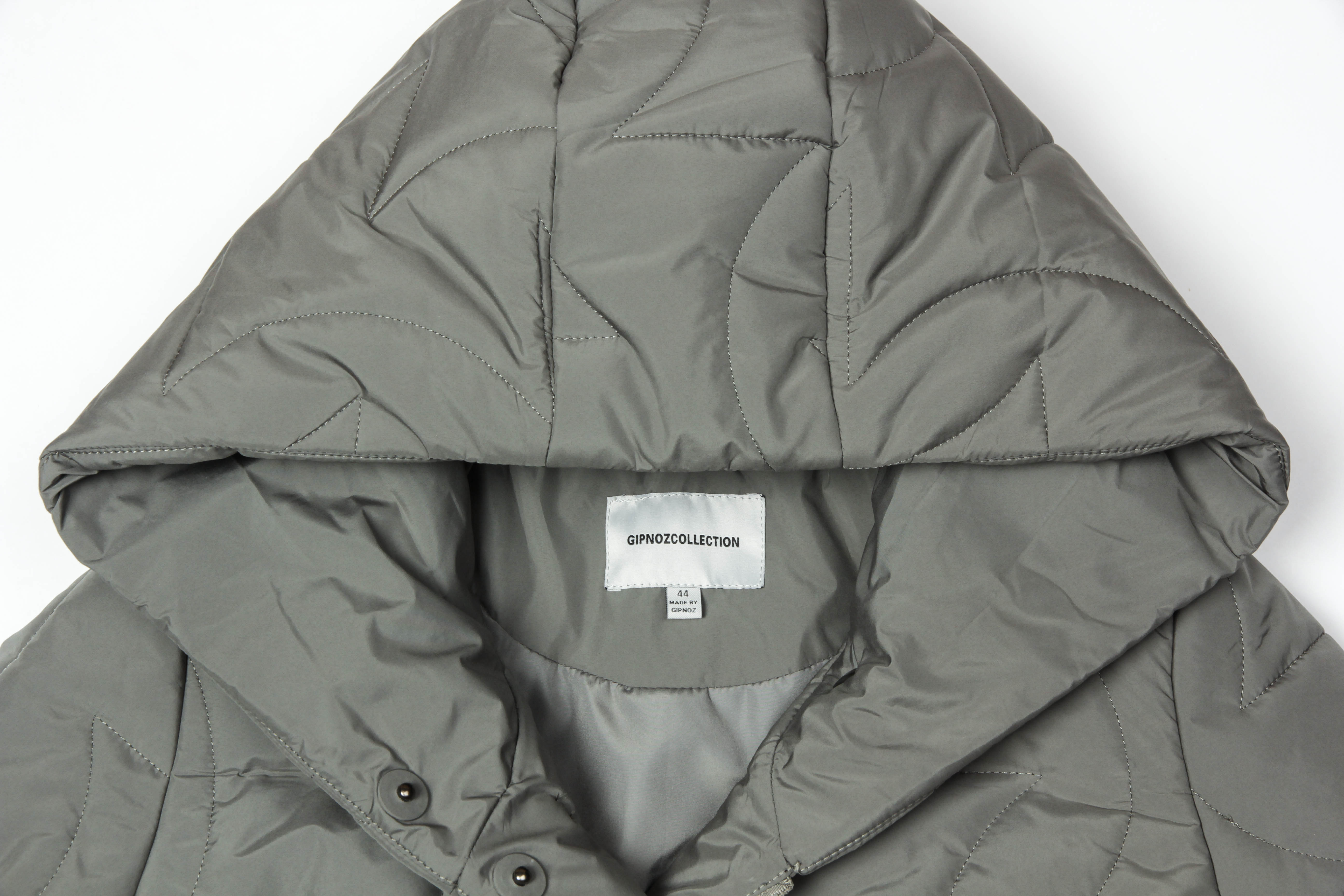 зеленая олива В этом году, как и в предыдущих, не теряют свою актуальность стеганые пальто. Изделие из данной ткани более практичное и удобное в использовании. Пальто в классическом стиле, полуприлегающего силуэта. Умеренный объем изделия идеально подходит для создания уютного образа, который при этом будет выглядеть стильно и элегантно. Втачной покрой рукава идеален для любой фигуры, придает стройность и строгость образу. Капюшон – очень удобная и актуальная деталь верхней одежды, защитит от ветра и холода. Рукав отгибается на манжет. Модель отлично смотрится с поясом и без. Пальто застегивается на кнопки и внутреннюю молнию. Новый вид стежки несомненно приковывает взгляды окружающих. Нам удалось продлить сезон носки изделия, за счет внедрения в производство нового вида стеганой ткани. Ткань верха плотная и многослойная. Утеплитель термофин, плотность 200. Температурный режим до -10.