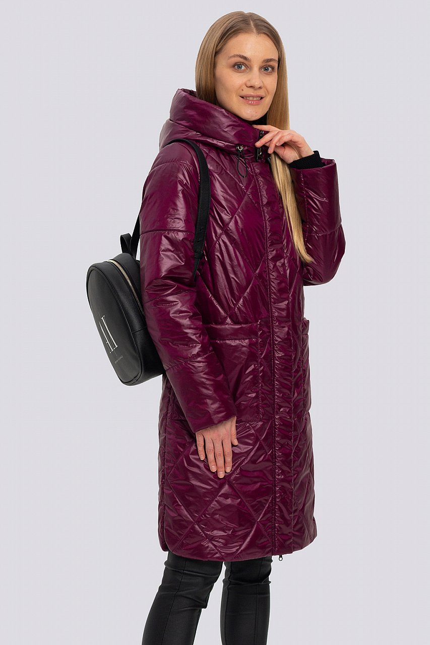 вишневый Модное и стильное женское пальто из выстроченной ткани уже давно стало неотъемлемой