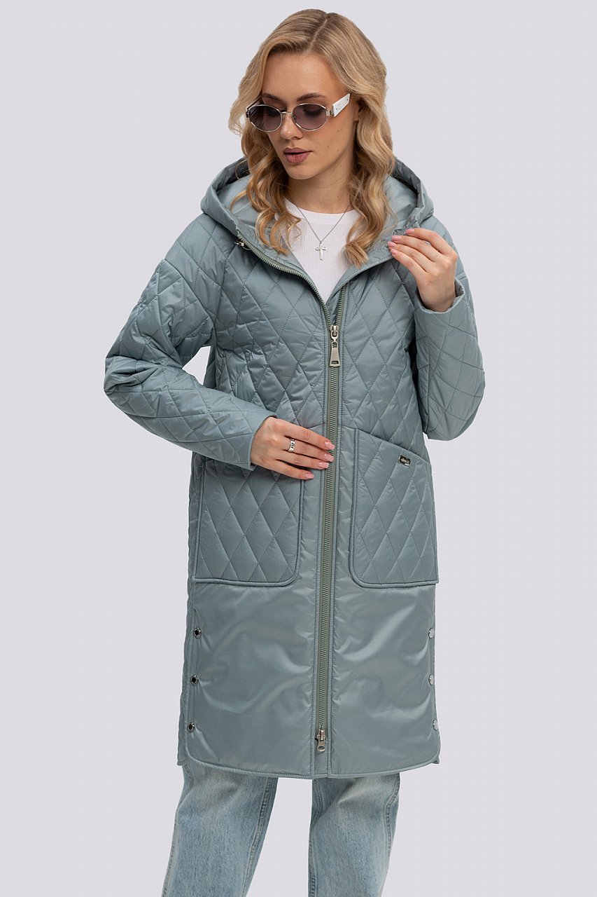 зеленый чай Женское пальто из строченой ткани с компаньоном в качестве отделки – это современный