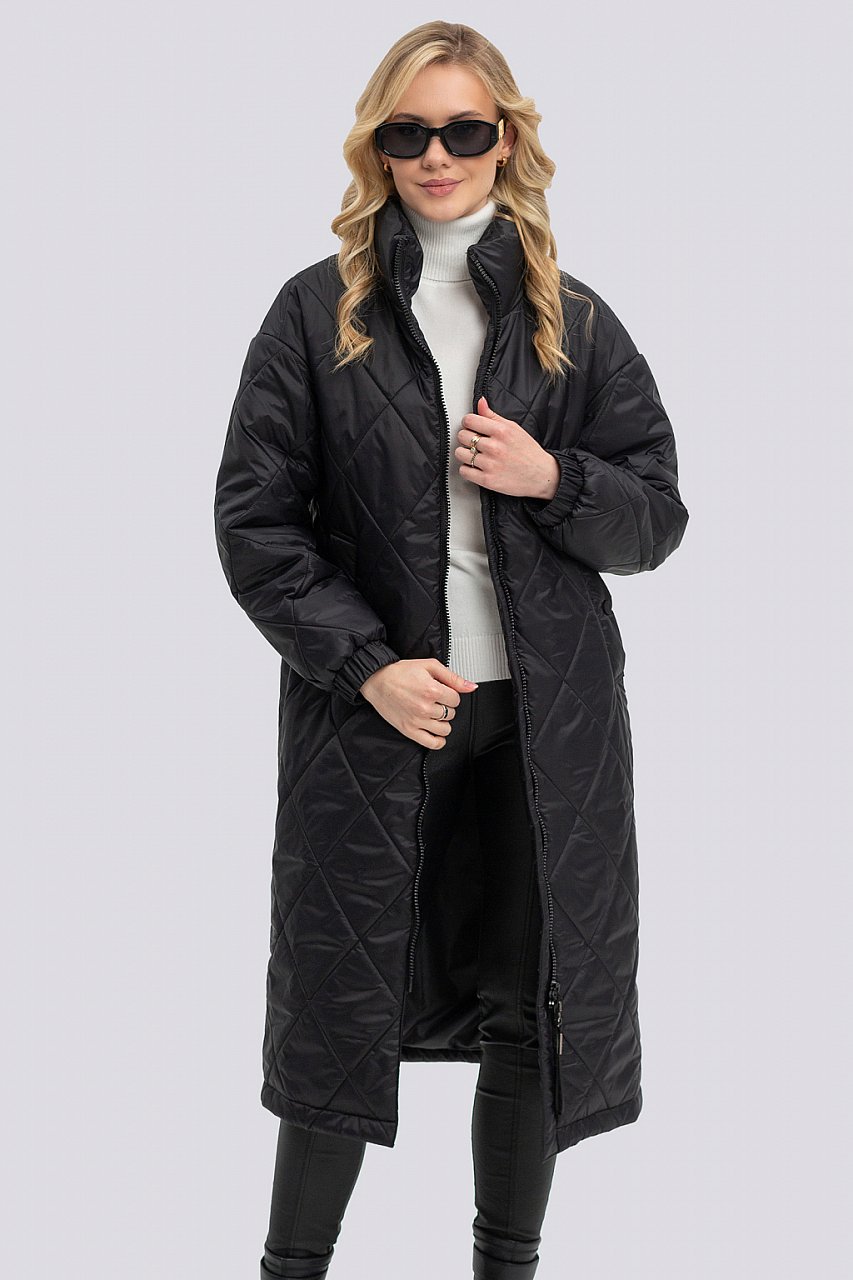 черный В настоящее время одежда ценится за универсальность и удобство, комфортность в носке и возможность составлять разные образы. Удлиненное пальто из плащевой ткани – отличный вариант на межсезонье - не промокает, не продуваемое. Наша модель достаточно простая: покрой рукава со спущенной линией плеча, свободный объем изделия, прямой силуэт, воротник стойка. Низ рукава собран на манжет с резинкой. Основной дизайн – применение контрастной фурнитуры, что выделяет модель среди остальных. Пальто застегивается на молнию и отлично подойдет для любого типа фигуры. По боковым швам – шлицы, которые можно расстегнуть для удобства движения. Модный прием предстоящего сезона – стежка ткани в крупный ромб, а также новая цветовая палитра, которая не позволят остаться равнодушными! Утеплитель термофин, плотность 150.