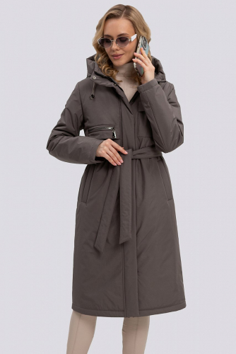 Пальто — база демисезонной одежды. В сезоне весна 2026 мы предлагаем пальто полностью на термофине. Изделие из данного материала более практичное и удобное в использовании и чистке. Верхняя ткань изделия не простегана, что позволяет ему выглядеть на фигуре максимально ровно. Наша модель с рукавом втачного покроя, прямого силуэта, умеренного объема – обеспечит оптимальную посадку на любую фигуру. Рукав отгибается на манжет. Застежка молния, закрытая планкой с кнопками. Удобный капюшон защитит от ветра. Основной акцент данной модели – ассиметричный дизайн, справа на изделии отлетная кокетка с молнией, слева накладной кармашек – все это несомненно привлекает внимание. Пальто отлично смотрится с поясом и без, идеальный выбор для любительниц классики с легким намеком на спорт. Материал изделия – плотный, без блеска. Утеплитель – термофин, плотность 160. Температурный режим до – 5. серо-коричневый