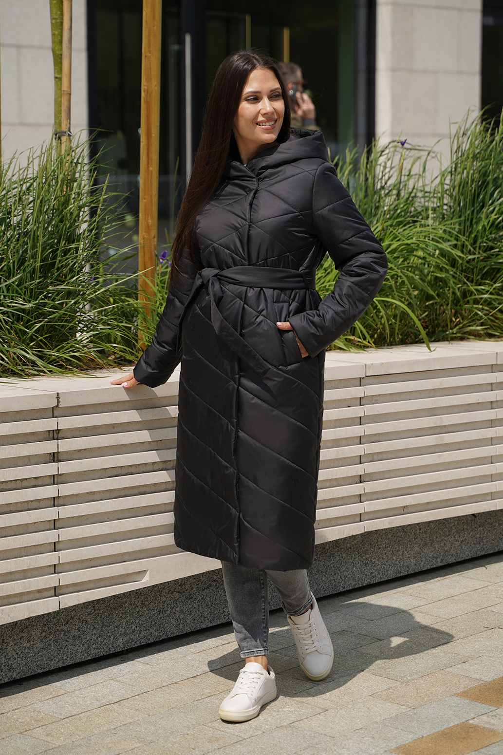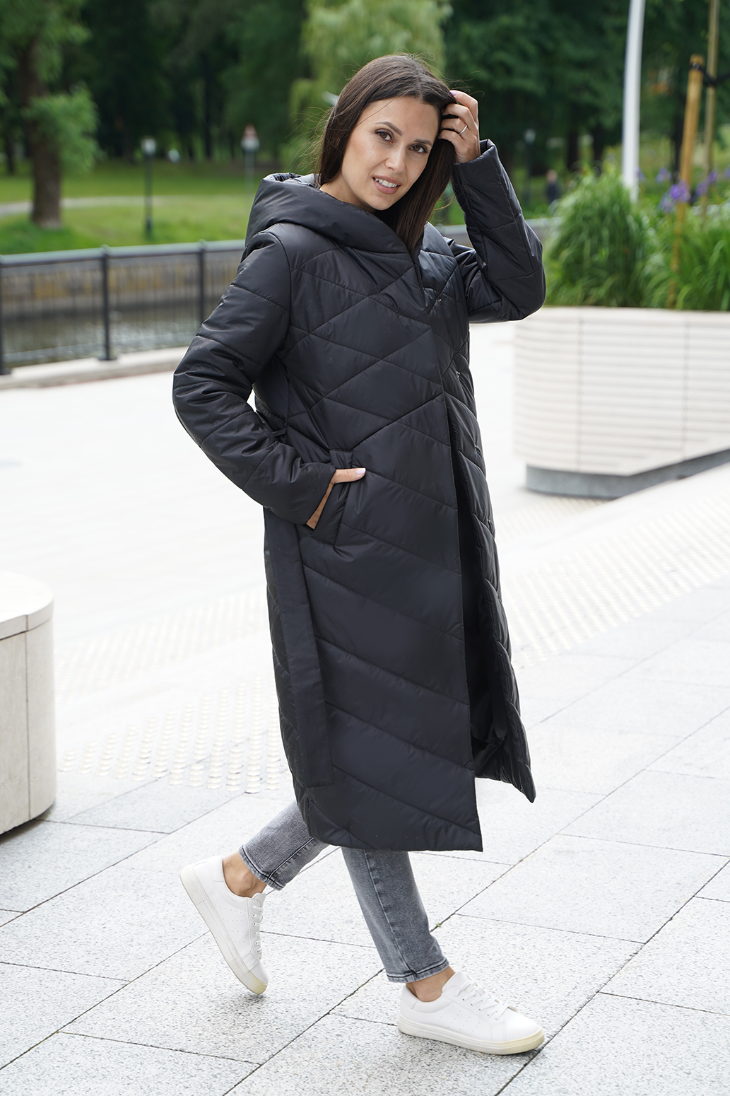 Женское демисезонное пальто на синтепоне, созданное для элегантных и комфортных образов. Двубортный крой придает ему классический вид, а шалевый капюшон — ощущение уюта и стиля в прохладную погоду. Оригинальная стежка добавляет пальто уникальности и изысканности, подчеркивая его авторский дизайн. Пояс, заправленный в шлевки, позволяет подчеркнуть талию и создать женственный силуэт, а карманы-листочки — практичные и приятные детали. Это пальто — гармоничное сочетание стиля и функциональности, которое подойдет любой женщине, желающей выглядеть тактически и при этом чувствовать себя комфортно.