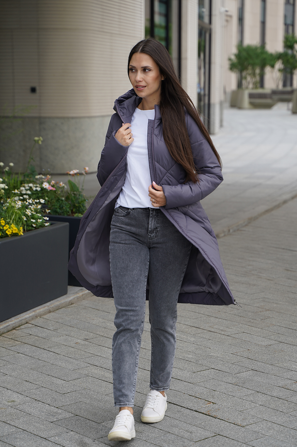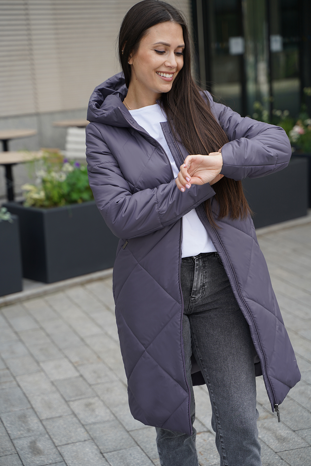 Стеганое пальто на синтепоне, выполненное с оригинальной стежкой, которая придает изделию особую текстуру и изысканный вид. Карманы спрятаны в швах, создавая гладкий и аккуратный силуэт. Видовая витая молния служит стильным акцентом и легко открывается и закрывается, добавляя изделию современный штрих. Капюшон с цельнокроенной стойкой отлично защищает от ветра и дождя. Такое пальто идеально сочетает в себе уют, функциональность и оригинальность.