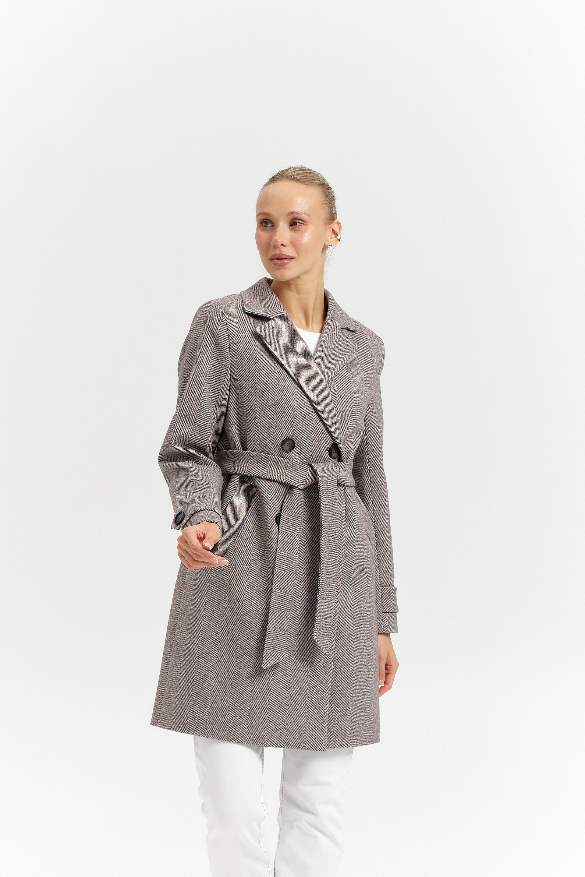 Пальто женское демисезонное 25570 (коричневый/ёлочка)