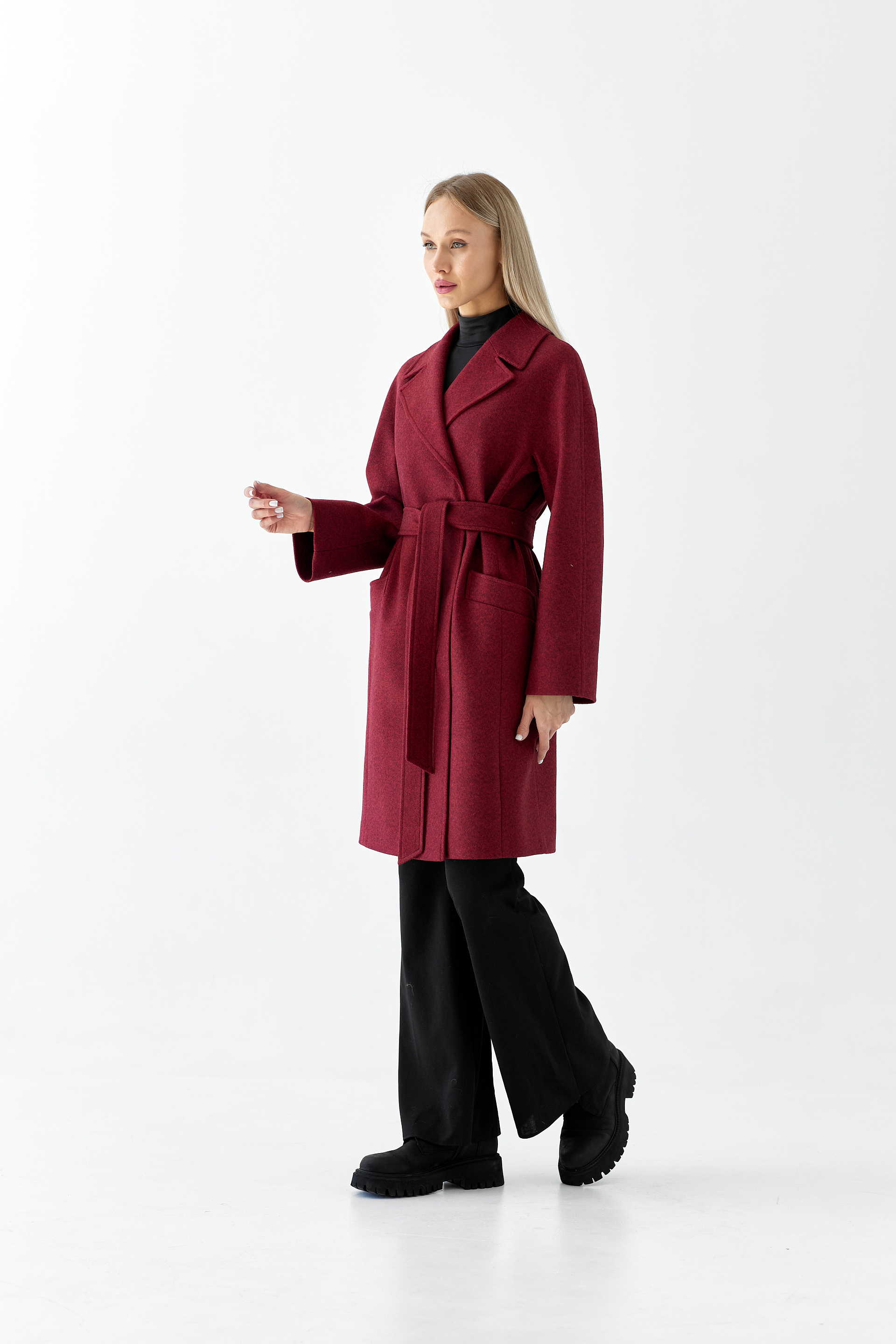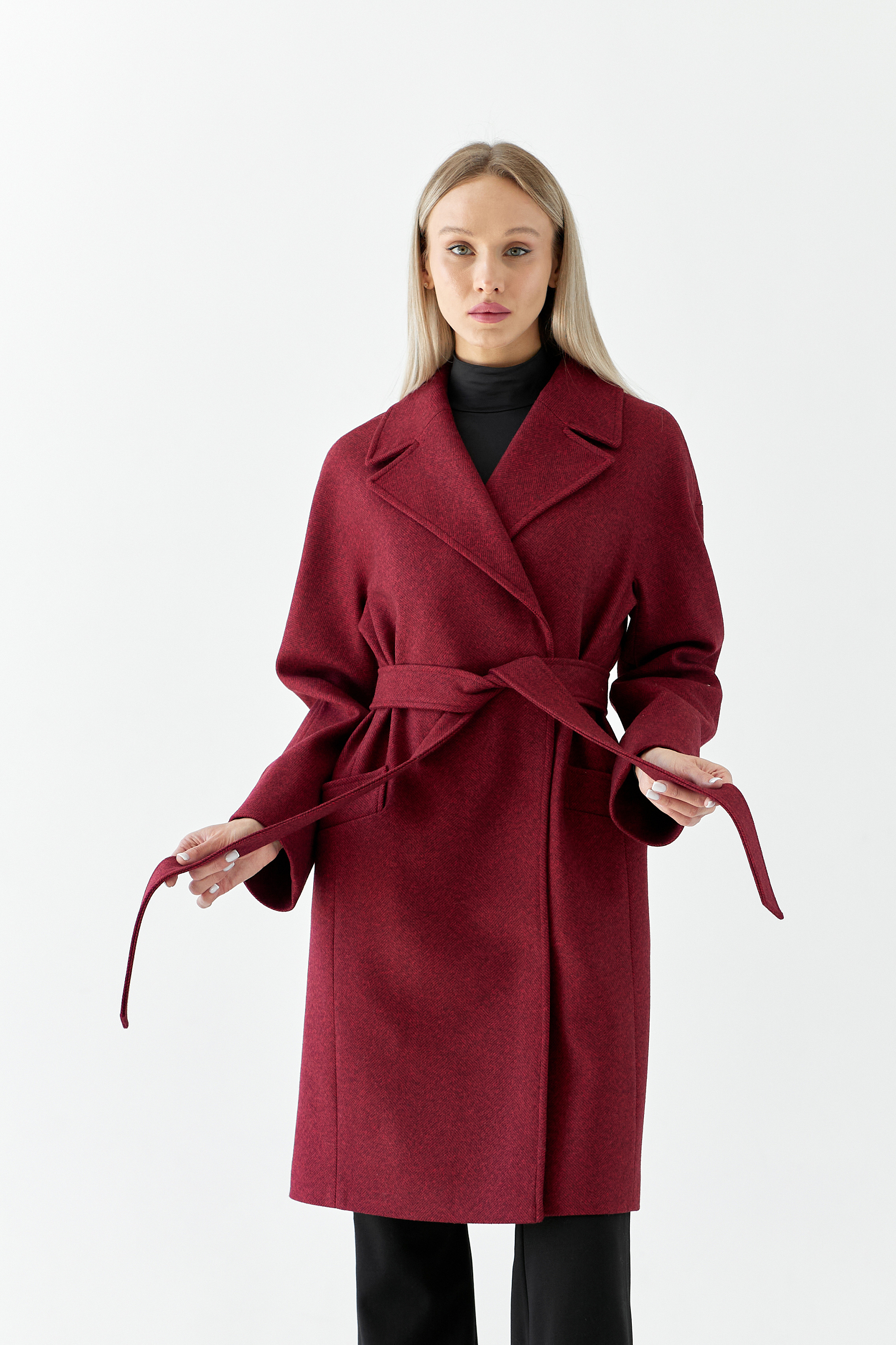 Пальто женское демисезонное 25885 (бордовый/ёлочка)