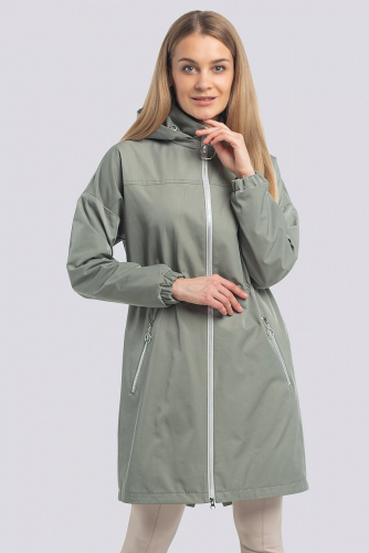 Модный женский плащ с капюшоном незаменимая вещь в женском гардеробе. Модель плаща соответствует стилю casual. Отлично сочетается с брюками, джинсами. Он универсальный, практичный, удобный. Плащ свободного объема со спущенной линией плеч. Застежка и карманы на «молнии», воротник –стойка. По талии кулиса , низ рукава на резинке. Низ плаща фигурный, на спинке разрез. Есть отстегивающийся капюшон. Состав ткани: 50% хлопок, 30% вискоза, 20% полиэстер.