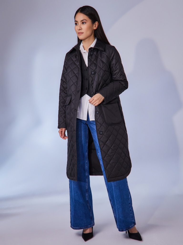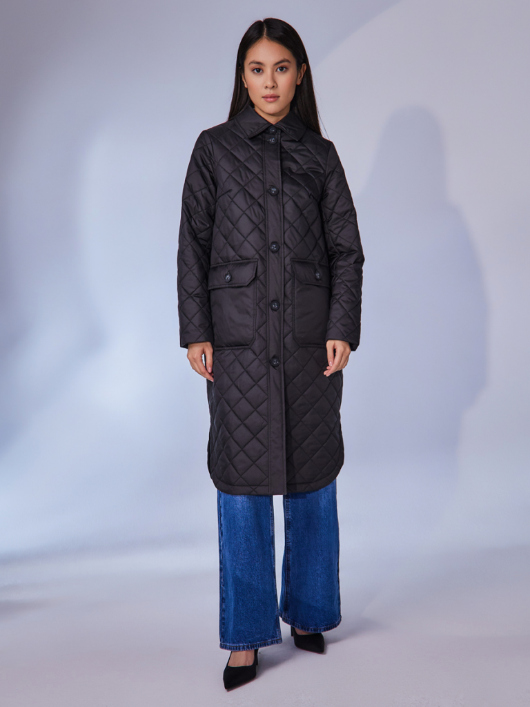 Утепленный плащ-рубашка прямого силуэта с втачным рукавом. В модели имеются два функциональных накладных кармана с клапанами на пуговицах, а также один внутренний карман. Ткань - плащевая с водоотталкивающей пропиткой, расстеганная ромбом. Утепление нового поколения ORSOTHERM 100 гр. Рекомендуемый температурный режим от +10°C до +18°C. Утепление нового поколения ORSOTERM 100 гр. Длина изделия: 110 см. Длина рукава: 64 см. Размеры: 42-56.