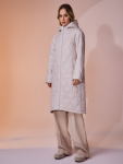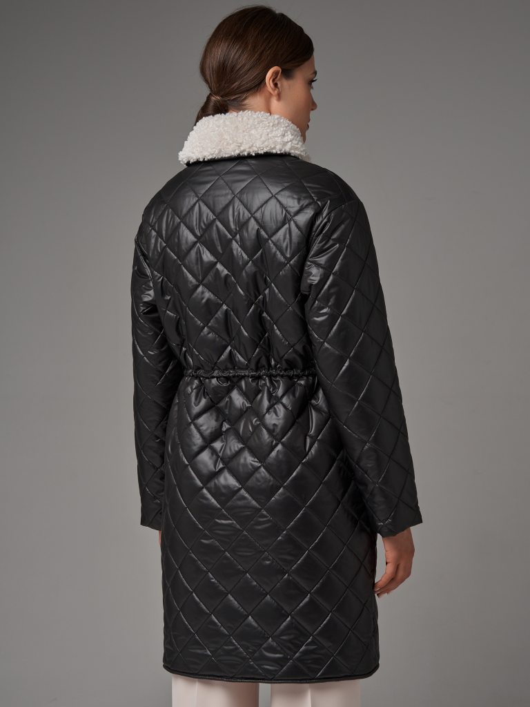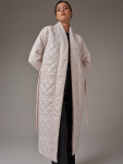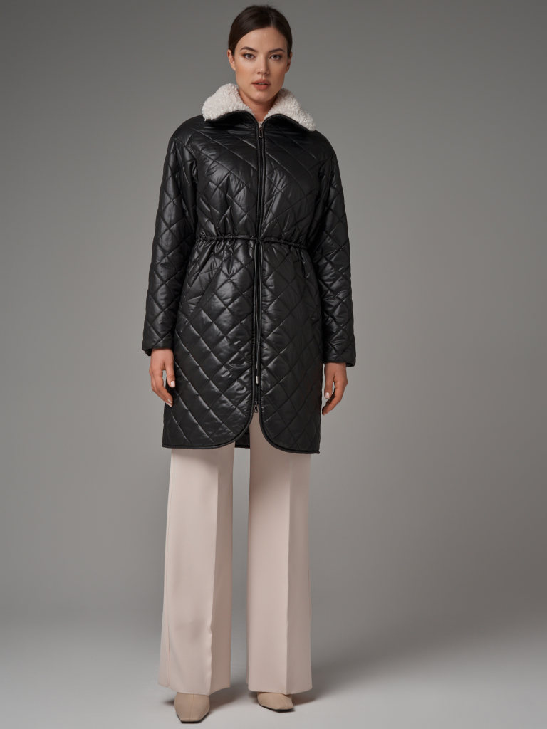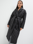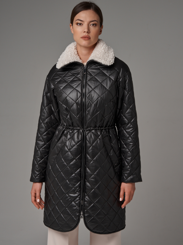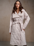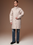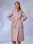 Утепленный плащ прямого силуэта. Рукав втачной со спущенной линией плеча с удобной заниженной проймой. Застежка на металлическую молнию. В изделии два кармана, оформленных листочками на потайных кнопках и один внутренний карман. Плащ утягивается по линии талии на шнур из кож.зама. Ткань плащевая с блеском, простеганная ромбом с водоотталкивающей пропиткой. Утепление нового поколения ORSOTHERM 150 г/м2. Рекомендуемый температурный режим(от +0°C до +15°C). Длина изделия -95 см. Длина рукава - 64 см.