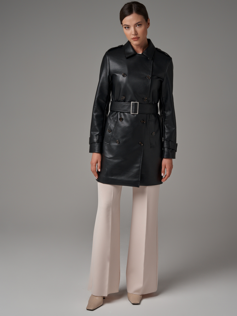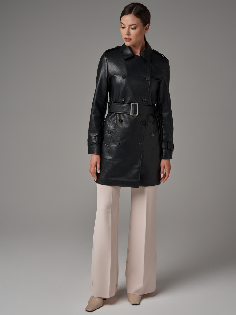 Коллекция: Зима 2023/2024 Длина изделия по спинке: 88 см Длина рукава: 64 см Плотность утеплителя: без утепления.. Рекомендуемый температурный режим: от +13°C до +20°C Покрой: прямой. Тип рукава: втачной Тип карманов: прорезные с листочками Состав: высококачественная экокожа 100% PU Материал подкладки: 100% Полиэстр Размеры: S, M, L Детали: застежка на пуговицы, в комплекте пояс из основной ткани.