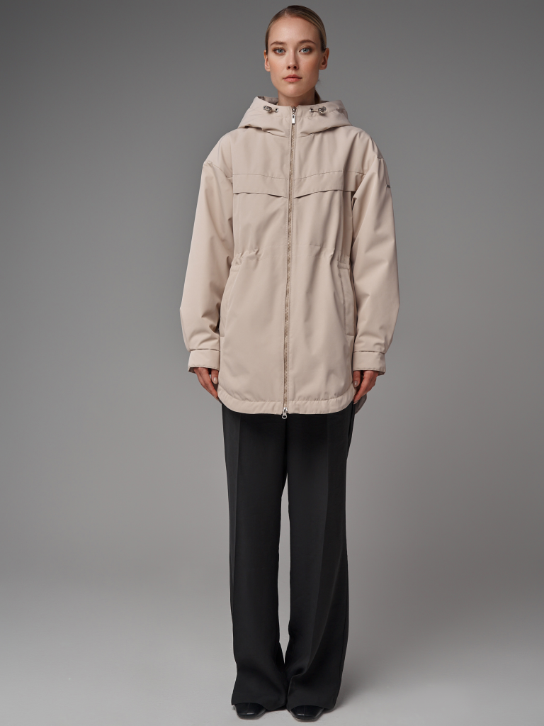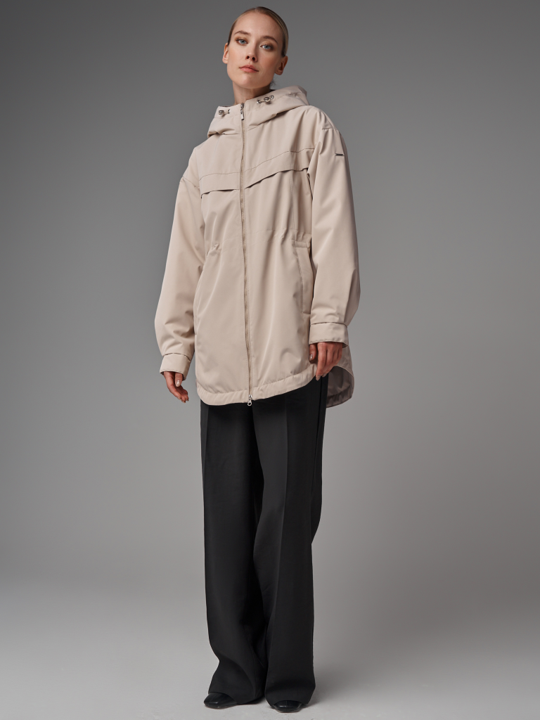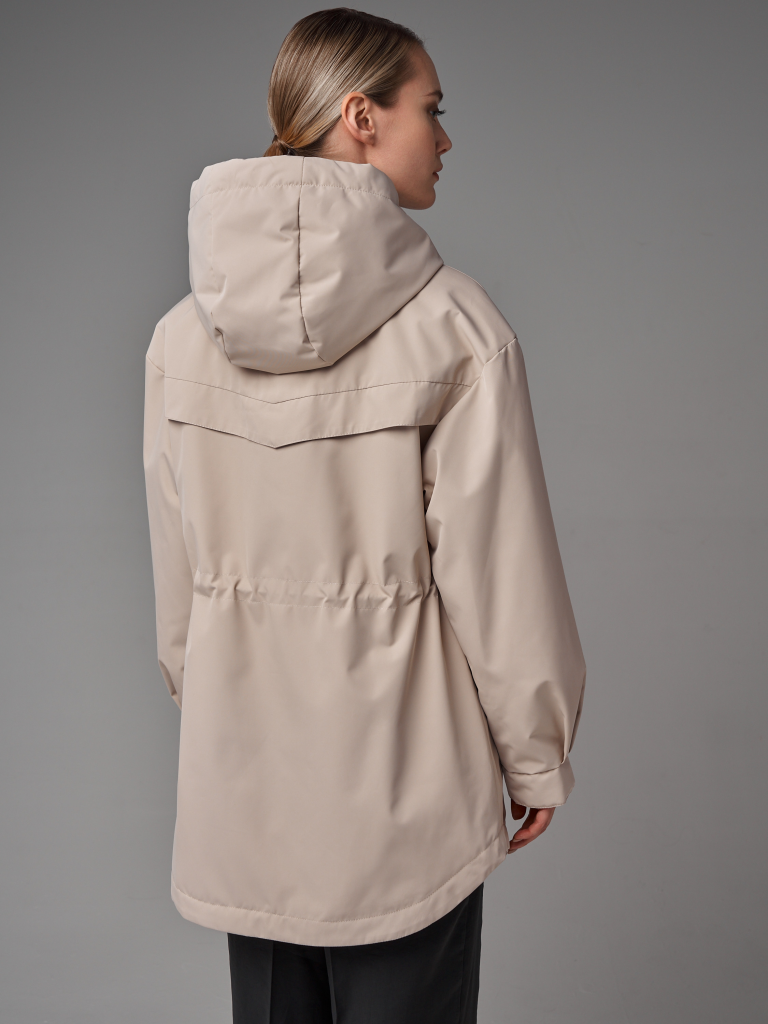Утепленный плащ а-силуэта с внутренней утяжкой на уровне талии. В модели есть втачной капюшон с утяжкой. Рукав со спущенным плечом. Низ рукава оформлен манжетой. По спинке и полочкам есть декоративные отлетные кокетки. В изделии низ оформлен фестонами. В плаще два функциональных кармана с листочками на потайных кнопках и один внутренний карман. Застежка на молнию. Ткань плащевая с водоотталкивающей пропиткой. Утепление нового поколения ORSOTHERM 60 гр. (от +15°C до +20°C). Длина изделия: 82 см (размеры 42-48), 87 см (размеры 50-56) Длина рукава: 64 см. Размеры: 42-56.
