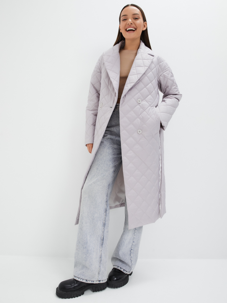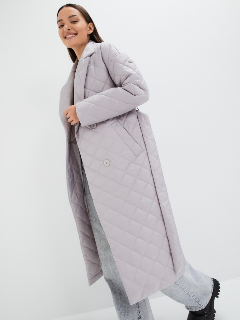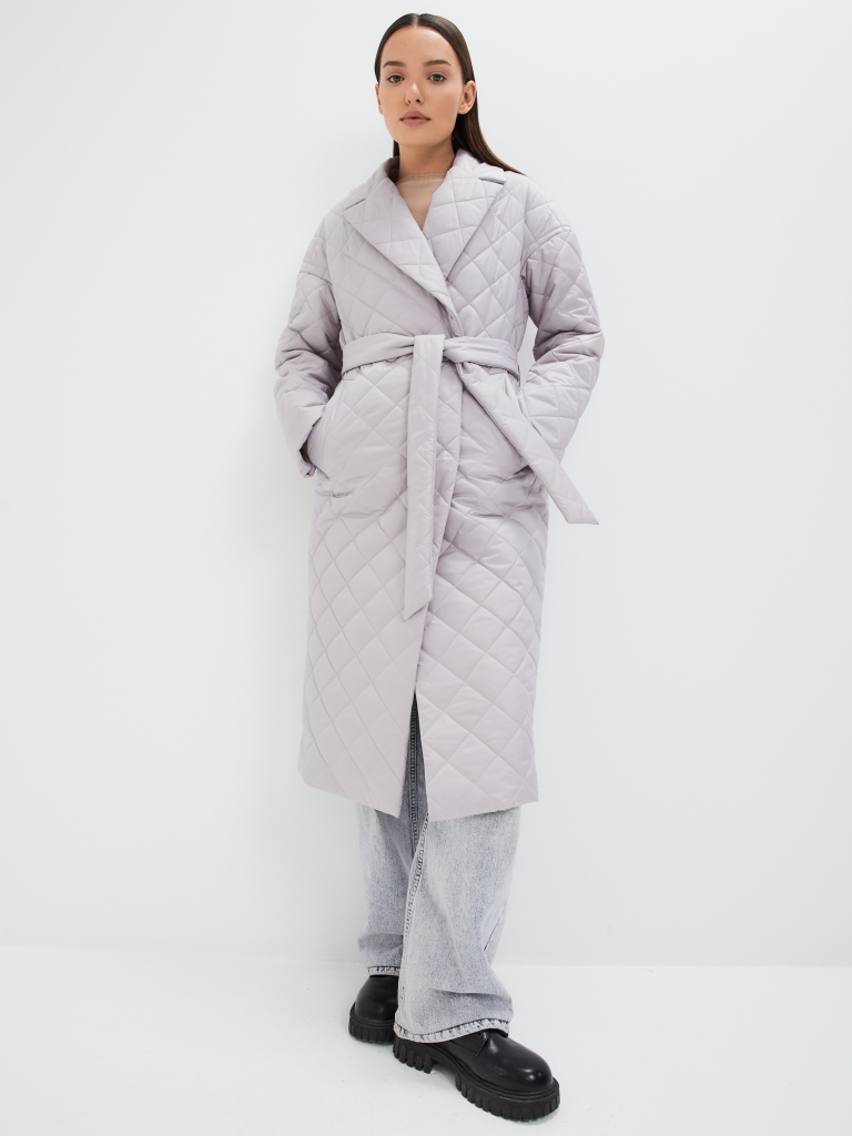 Классический стеганый плащ силуэта "кокон" . Рукав со спущенным плечом. Застежка на пуговицы в цвет изделия. В изделии имеются два функциональных кармана с листочками на и один внутренний карман. В комплекте с изделием идет пояс из основной ткани. Ткань - плащевая с водоотталкивающей пропиткой. Утепление нового поколения ORSOTHERM 100 гр. (от +10°C до +18°C). Длина изделия: 115 см Длина рукава: 64 см. Размеры: 42-56.
