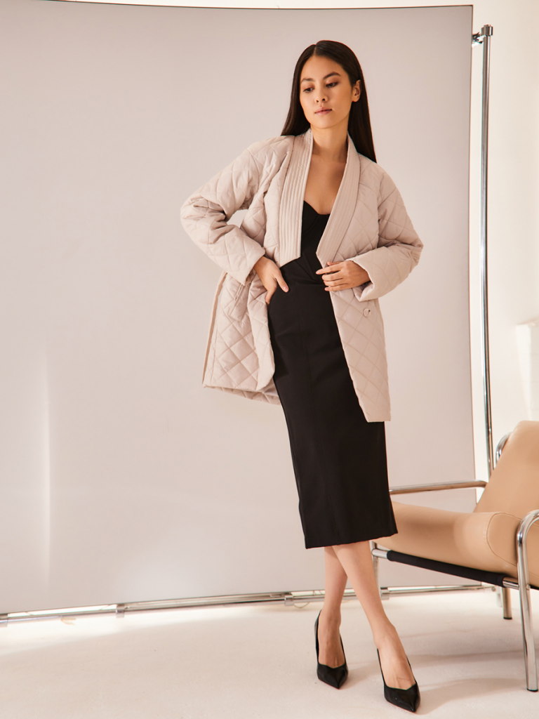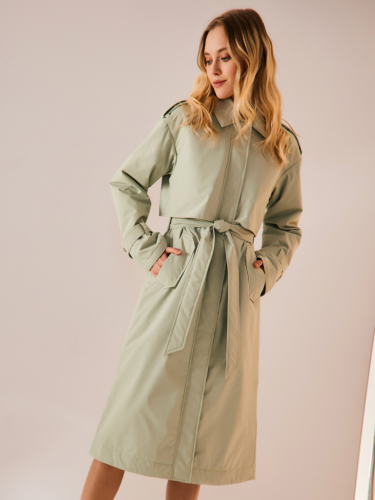 Стеганый плащ-кимоно прямого силуэта. Рукав со спущенным плечом. Застежка двубортная на пуговицы. В изделии два кармана, оформленных листочками на потайных кнопках и один внутренний карман. В комплекте с плащом идет пояс из основной ткани. Ткань плащевая с водоотталкивающей пропиткой, простеганная ромбом. Утепление нового поколения ORSOTHERM 100 гр. (от +15°C до +20°C ). Длина изделия: 80 см. Длина рукава: 64 см. Размеры: 42-56.