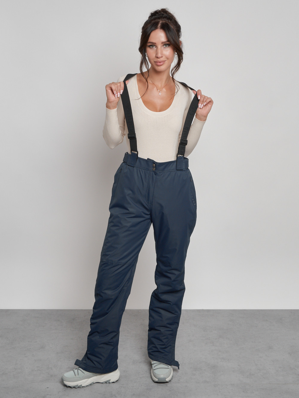 Полукомбинезон утепленный женский зимний горнолыжный темно-синего цвета 7607TS