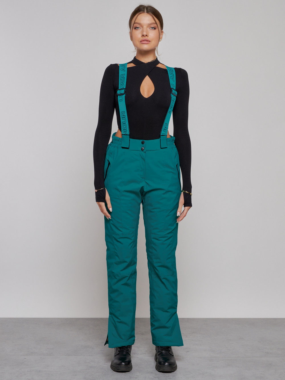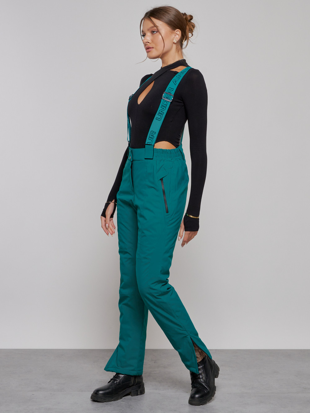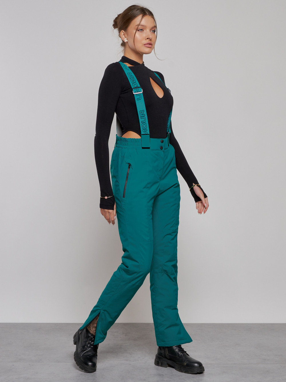 Полукомбинезон утепленный женский зимний горнолыжный зеленого цвета 526Z