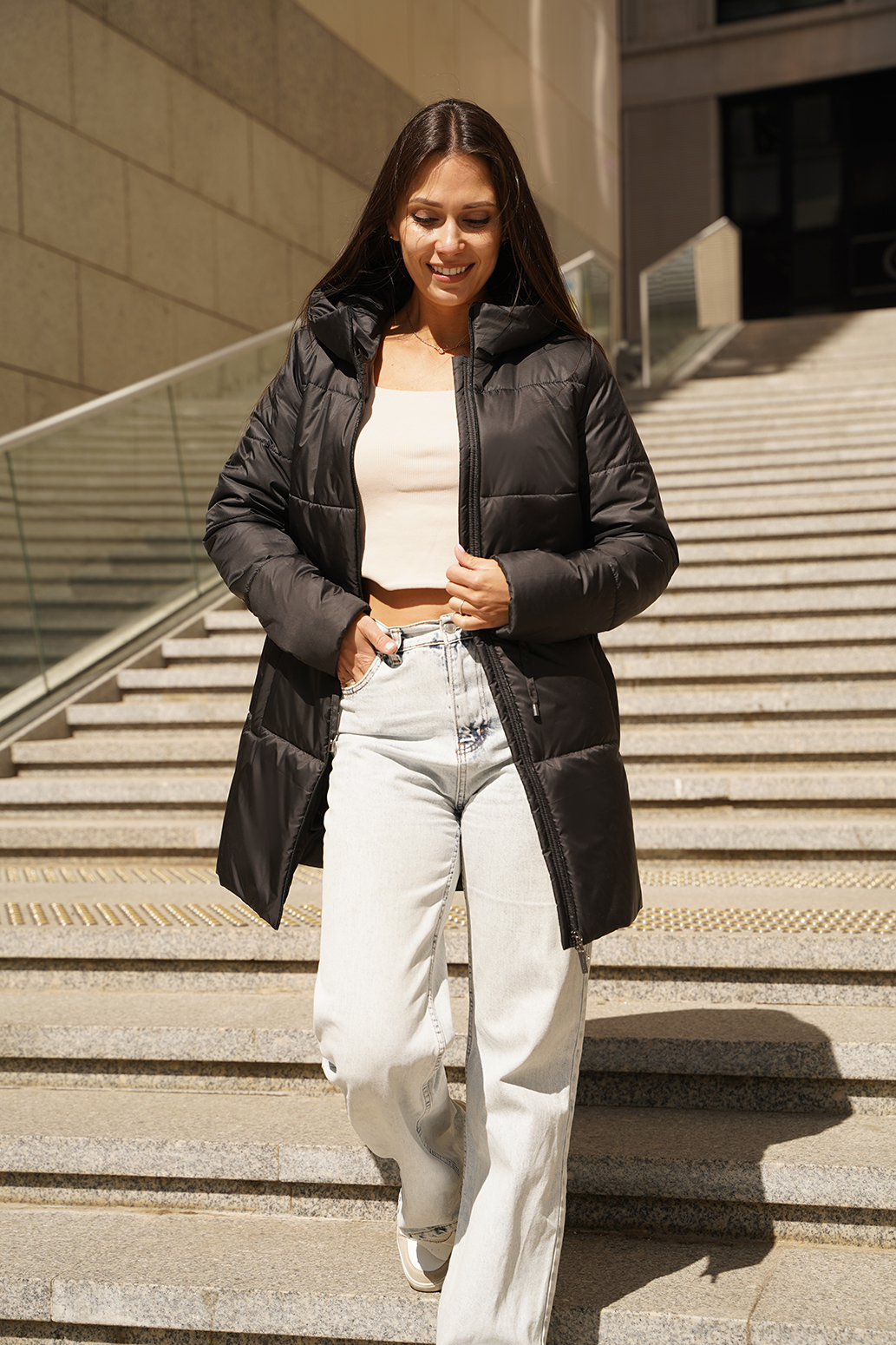 Лаконичное утепленное полупальто сочетает практичность и стильность. Втачной рукав обеспечивает аккуратную посадку и классический силуэт, а регулируемая кулиса по талии позволяет подчеркнуть фигуру и добавить индивидуальности образу. Карман листочка удобное дополнение для хранения мелочей, а видовая витая молния придает изделию современный и оригинальный акцент. Несьемный капюшон с цельнокроенной стойкой не только защищает от ветра и дождя, но и создает строгий, элегантный образ. Это гармоничное сочетание функциональности и эстетики — отличный выбор для тех, кто ценит удобство и стиль в холодную погоду!
