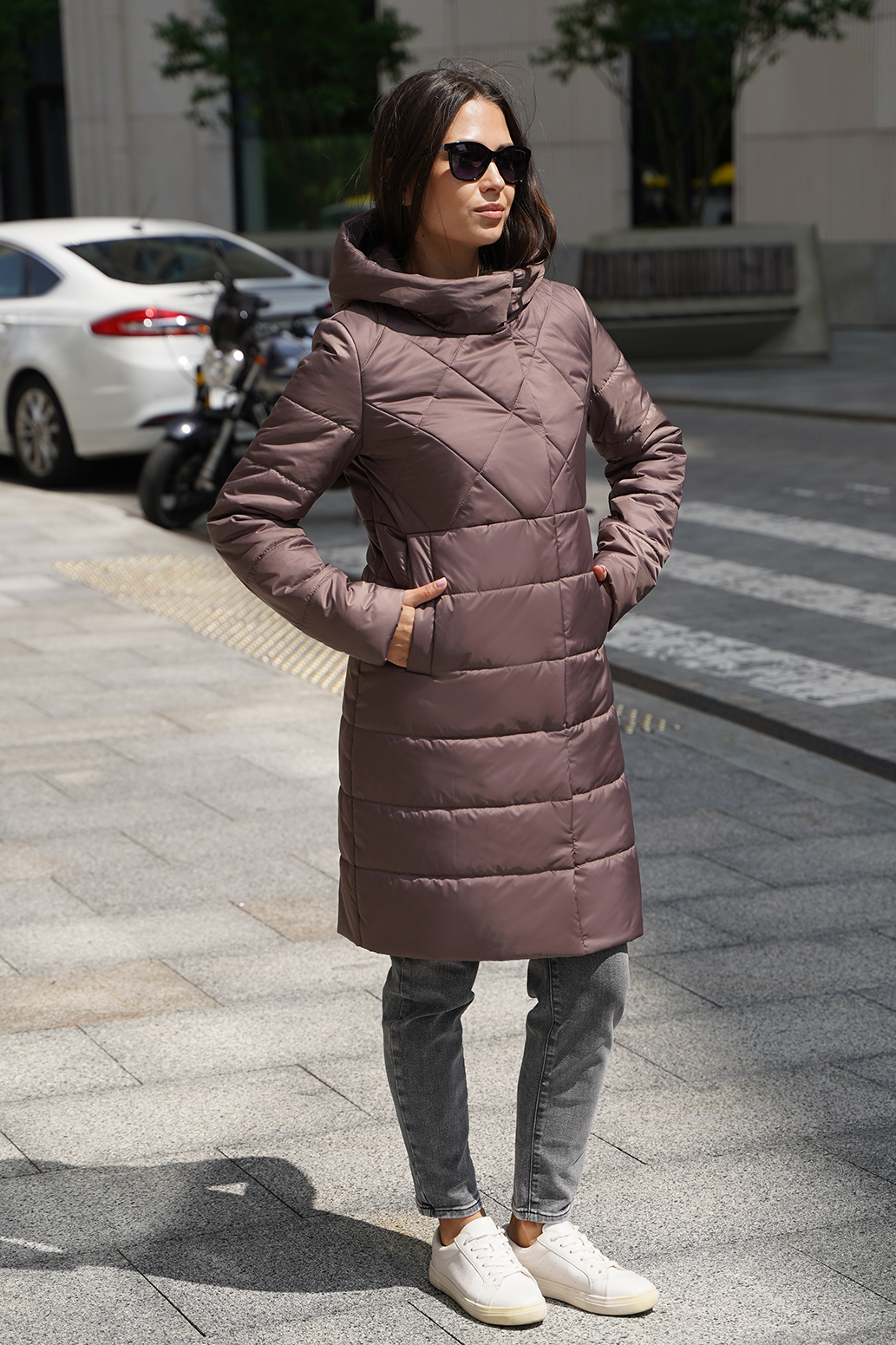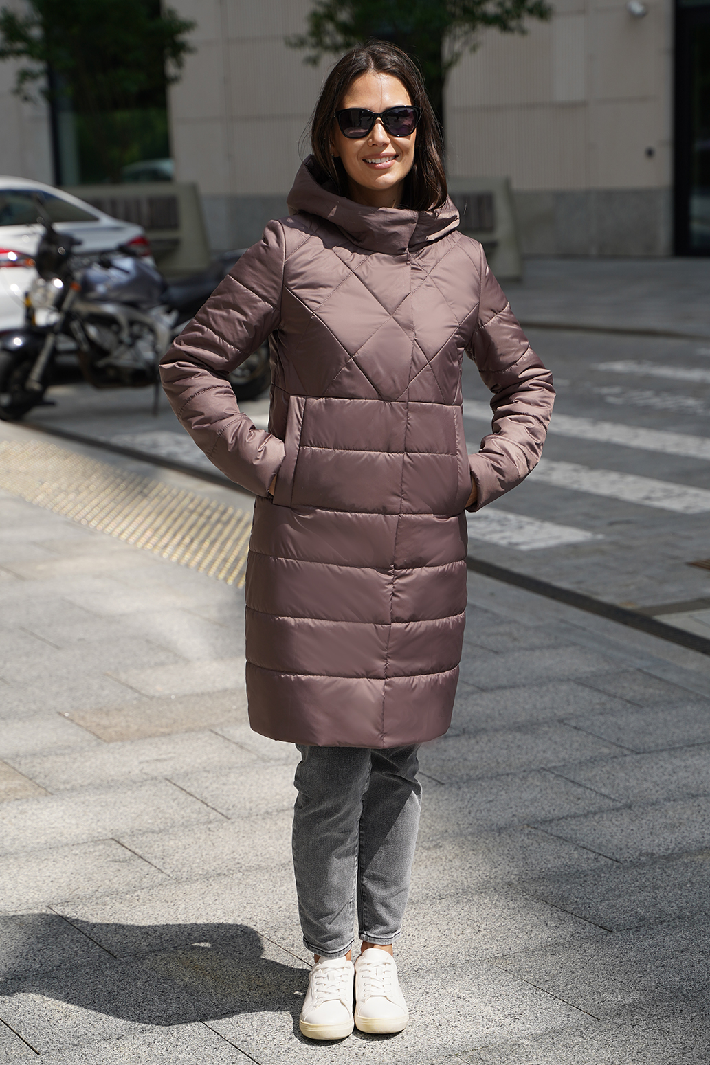 Стильное, комфортное полупальто полуприлегающего силуэта с оригинальной стежкой ромбами по кокеткам переда и спинки. Рукав втачной, уютный капюшон с высокой стойкой. Карманы листочки. Модель сочетает в себе элегантность и простоту. Пальто отлично смотрится практически на любой фигуре, хорошо впишется в Ваш гардероб благодаря своей универсальности.