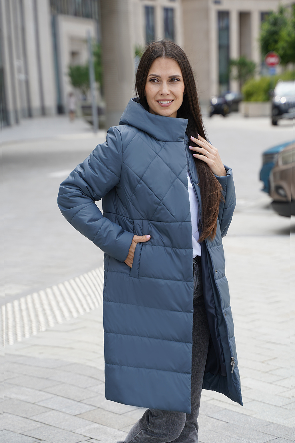 Стильное, комфортное полупальто полуприлегающего силуэта с оригинальной стежкой ромбами по кокеткам переда и спинки. Рукав втачной, уютный капюшон с высокой стойкой. Карманы листочки. Модель сочетает в себе элегантность и простоту. Пальто отлично смотрится практически на любой фигуре, хорошо впишется в Ваш гардероб благодаря своей универсальности.