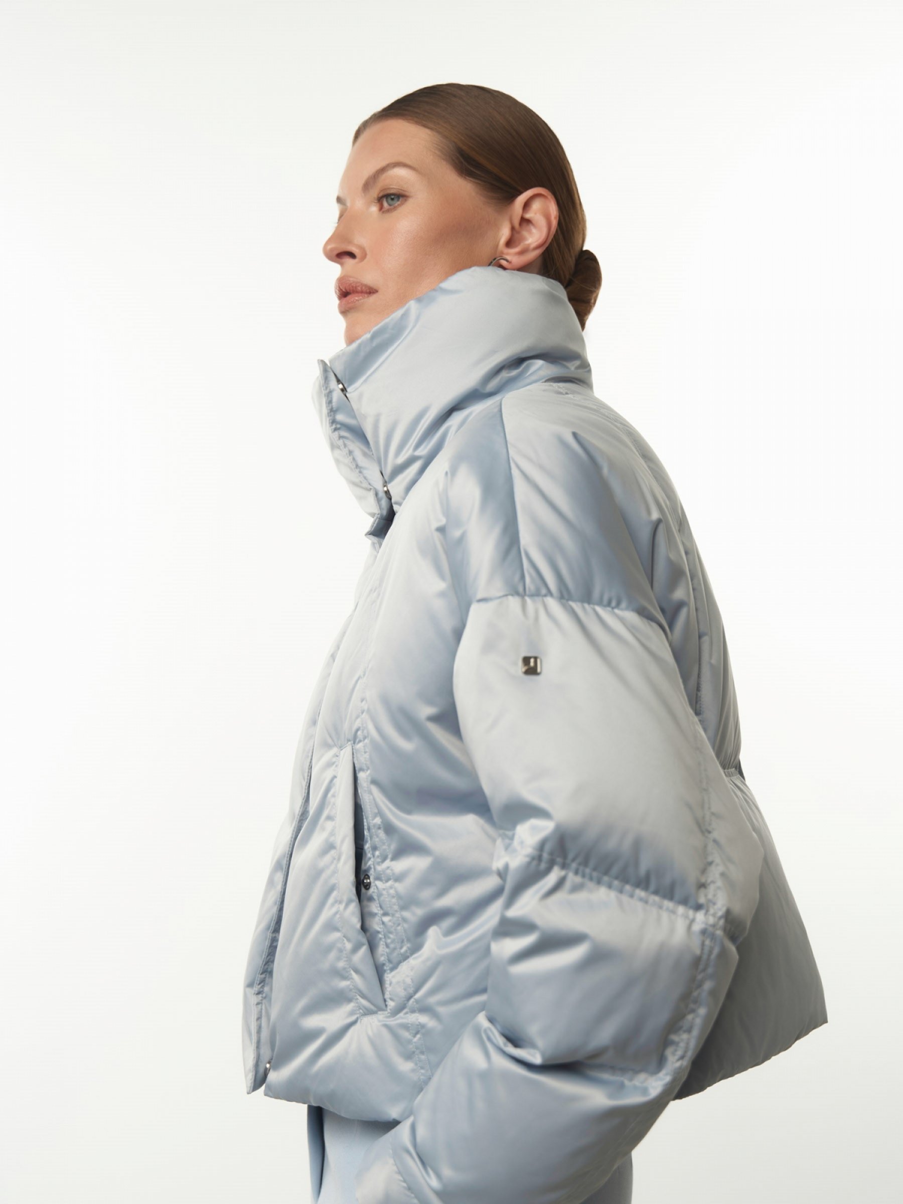 Куртка оверсайз в спортивном стиле яркая, удобная и легкая. Укороченный фасон удлиняет силуэт и подчеркивает фигуру. Выполнена из прочного синтетического материала с красивым сатиновым отливом, утеплитель – натуральные пух и перо. Застегивается на нейлоновую молнию и ряд потайных кнопок. Крупная квадратная стежка на спинке и горизонтальная на рукавах делает изделие характерным и динамичным. Высокий воротник-стойка защищает от ветра шею и декольте. Объем манжет регулируется кнопками, объем куртки – кулиской по нижнему краю. Удобные боковые прорезные карманы. Три модных универсальных цвета: голубой, пудровый и тофу. верх: 100% полиэстер; подклад: 100% полиэстер; наполнитель: 90% пух, 10% перо