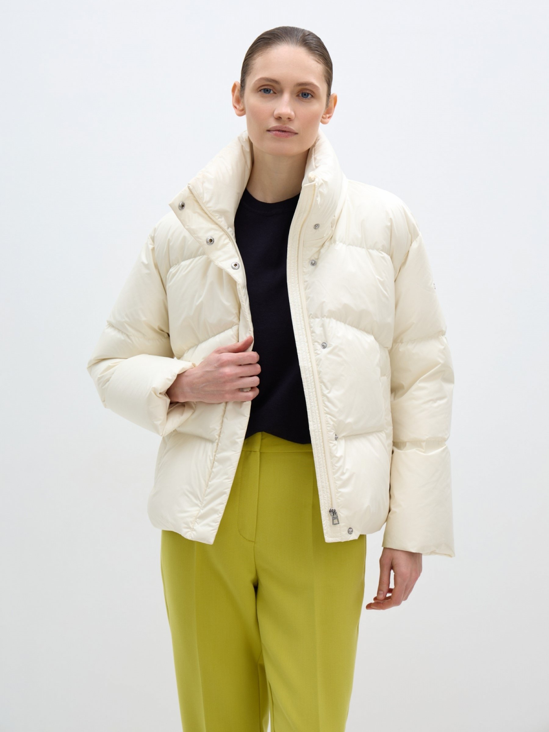 Многослойная пуховая куртка с утепленными воротником и капюшоном предназначена для холодной весны или осени. Натуральные пух и перо отлично согревают, а ткань с фактурным микрорисунком не пропускает ветер. Съемный капюшон со стойкой можно затянуть кулисой и застегнуть на кнопки, при необходимости – снять. Если забыли перчатки, есть вместительные боковые карманы на кнопках. Застежка на нейлоновую молнию, закрытую планкой на потайных металлических кнопках – еще одна преграда для холода. Шелковистая подкладка в тон. верх: 100% нейлон; подклад: 100% полиэстер; наполнит: 90% пух, 10% перо
