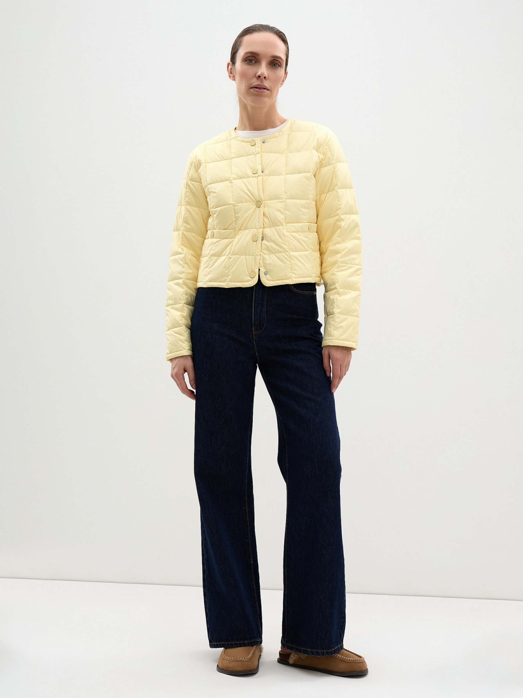 Облегченная пуховая куртка с круглым вырезом и в шелковистой ткани – одна из самых изящных моделей новой коллекции. Утеплена натуральным пухом и пером, простегана трендовой квадратной стежкой, поэтому уютно согреет в демисезон. Для максимальной функциональности дополнили ее передними карманами на металлических матовых кнопках в тон. На такие же кнопки застегивается и само изделие. Носите соло или под еще один пуховик. Без подкладки. верх: 100% полиэстер; подклад: 100% полиэстер; наполнит: 90% пух, 10% перо