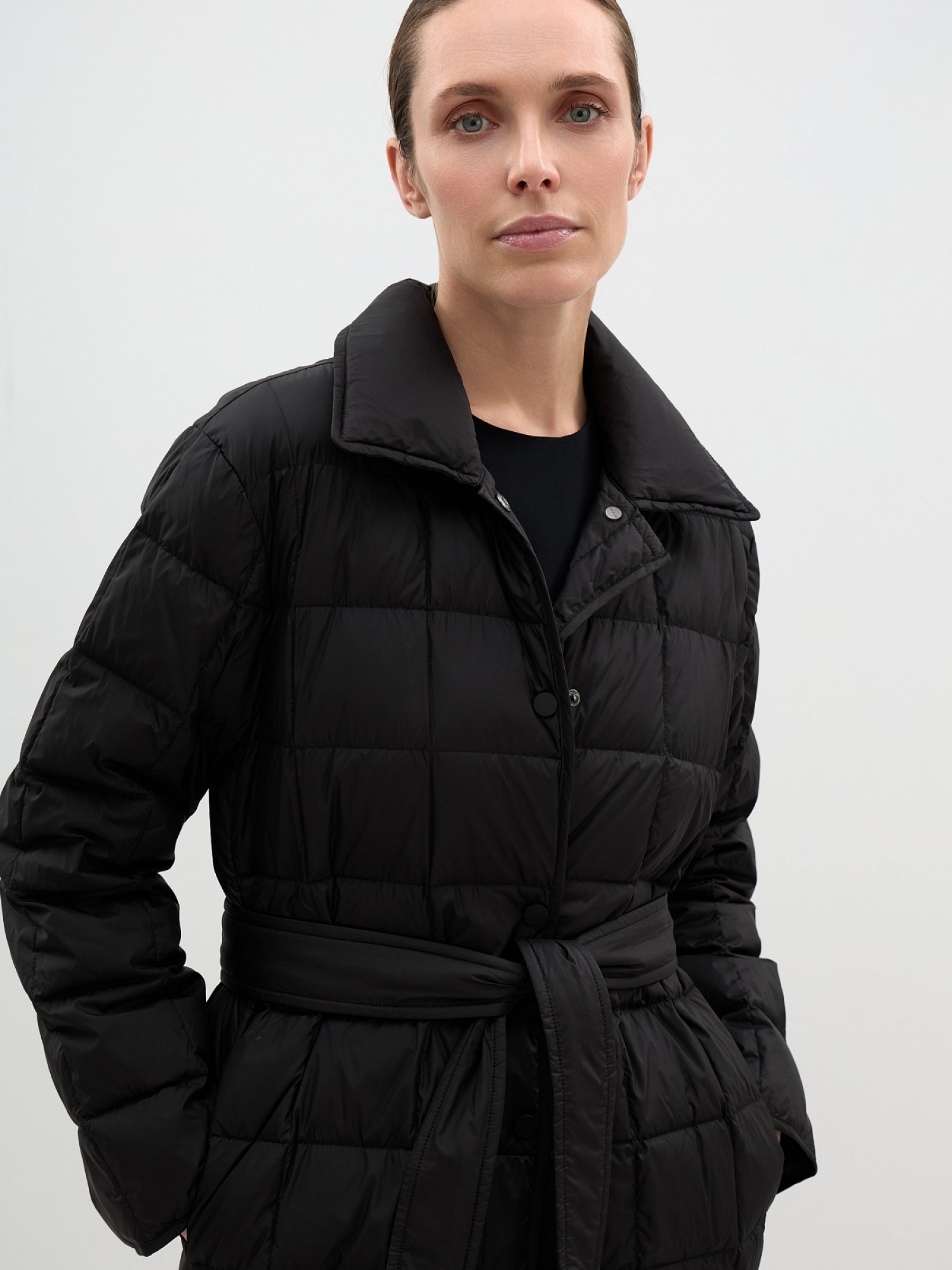 Однобортное облегченное пальто защитит от ветра и холодов демисезона. Выполнено в прочной матовой ткани, набито натуральным пухом и пером. Частая квадратная стежка надежно фиксирует наполнитель, усмиряя объем изделия. Классический дизайн – прямой свободный крой, отложной воротник, тканевый пояс на шлевках – обеспечивает безупречное впечатление и вариативность стилизации. Модель застегивается на металлические матовые пуговицы в тон. Без подкладки. верх: 100% полиэстер; подклад: 100% полиэстер; наполнит: 90% пух, 10% перо