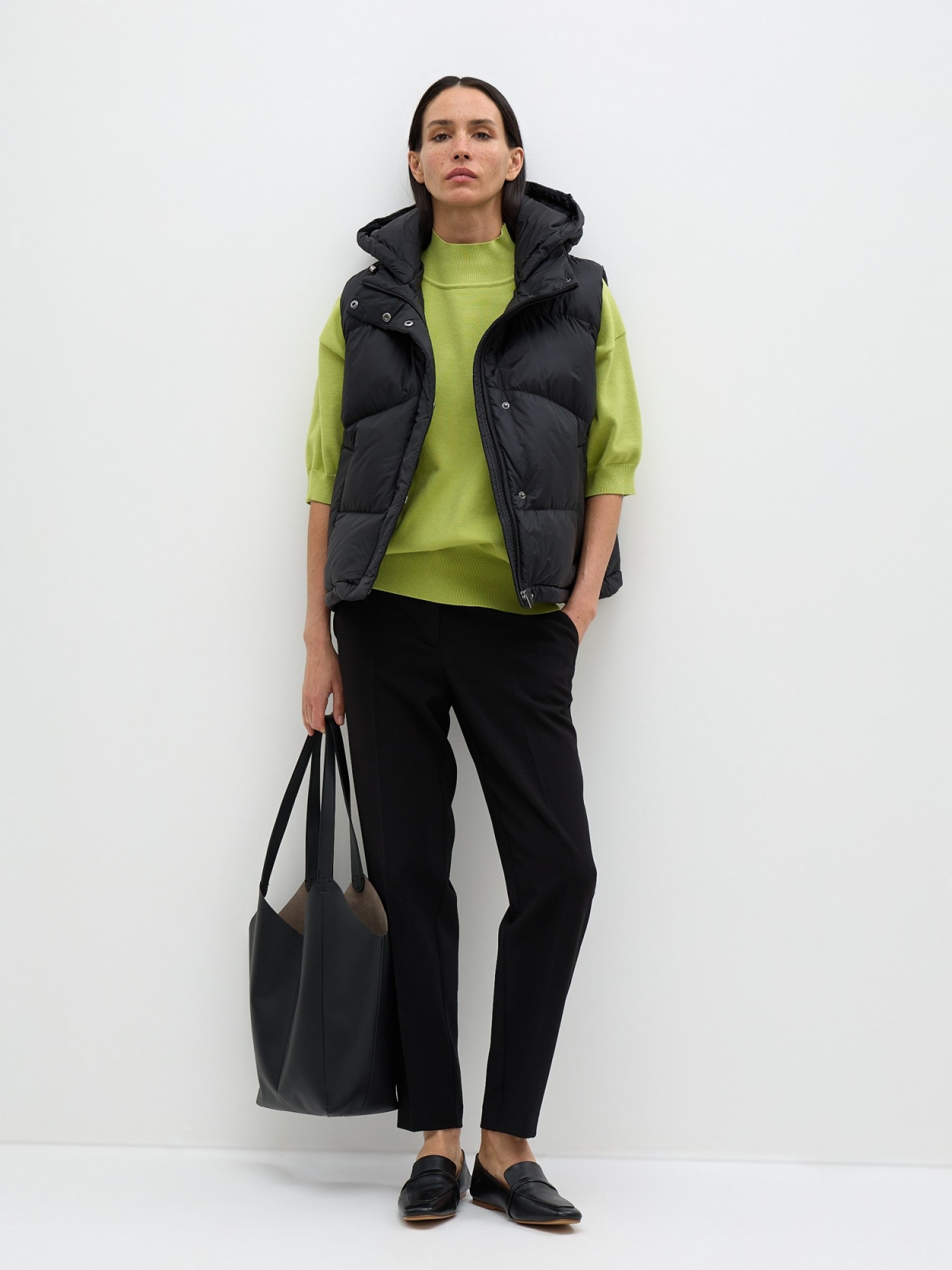 Пуховой стеганый жилет с утепленным воротником выручит в межсезонье, когда в теплой куртке уже жарко, а в свитере еще холодно. Подстраивайте его под ситуацию: в холодный вечер застегните до самого верха, если потеплело – снимите теплый внутренний капюшон. За счет прямого кроя, усредненного объема и широких пройм посадка не зависит от особенностей фигуры. Надежная двойная застежка – нейлоновая молния и планка с металлическими кнопками. верх: 100% нейлон; подклад: 100% полиэстер; наполнит: 90% пух, 10% перо