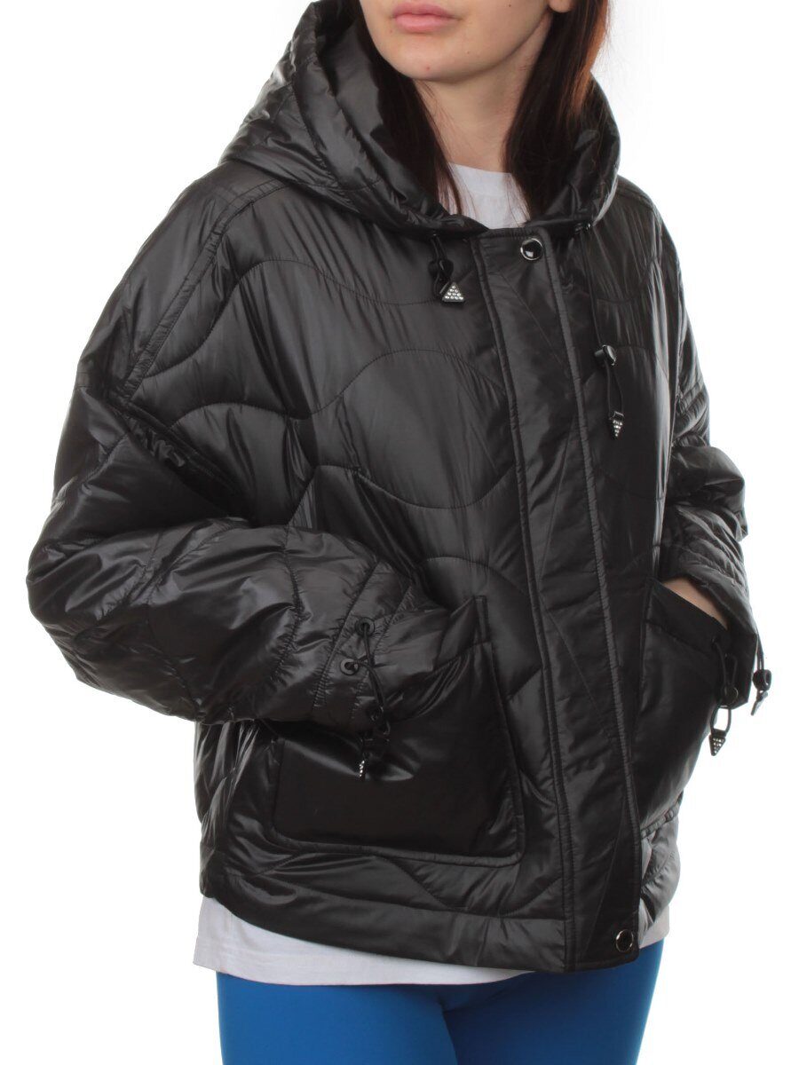 23-022 BLACK Куртка оверсайз демисезонная женская (синтепон 100 гр.)